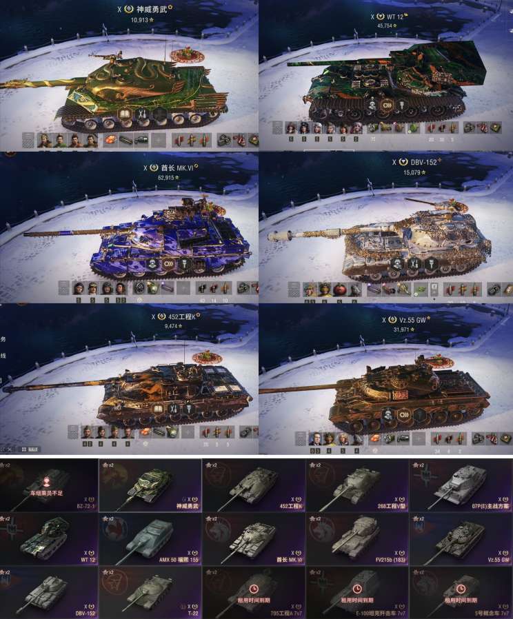 55X窝囊鼠,dbv152,WT12,酋一万,哥特,神威,452k,熊,金牛座