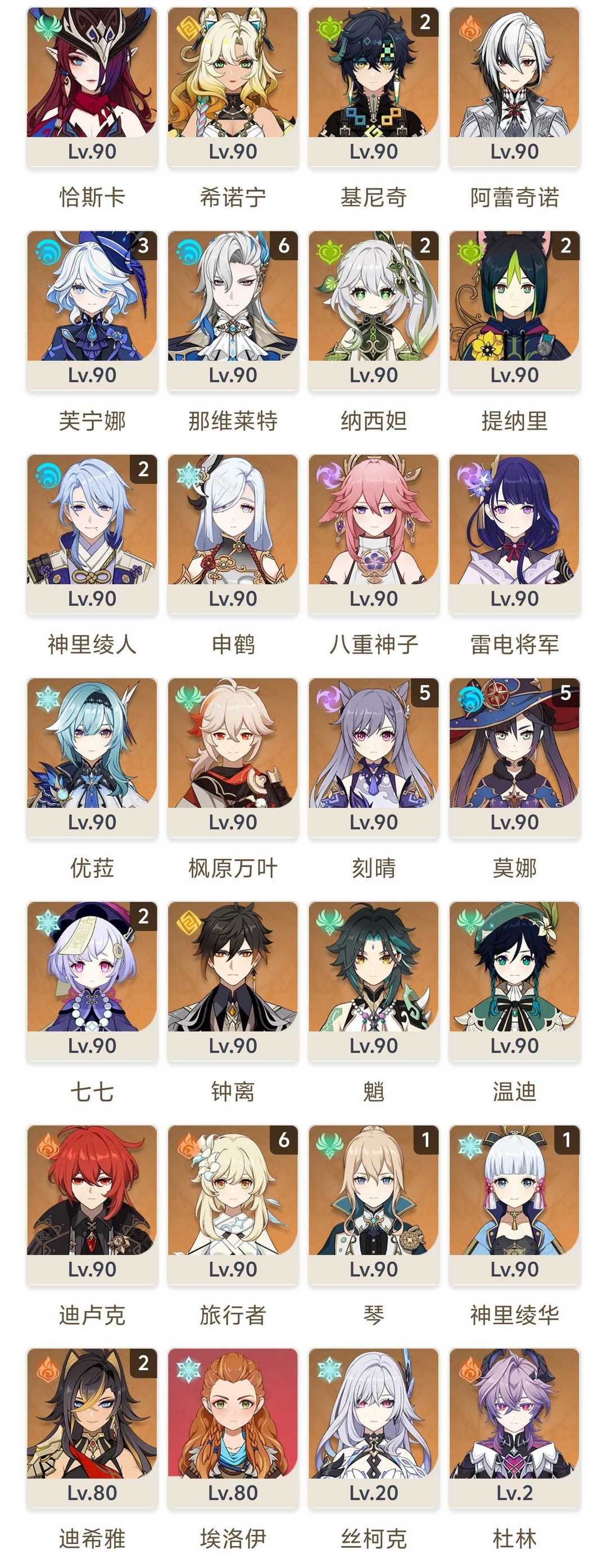 速玩⚡️28个五星角色❤️满命满精那维莱特✨杜林✨5莫娜✨5刻晴✨3芙宁娜✨2基尼奇✨2提纳里