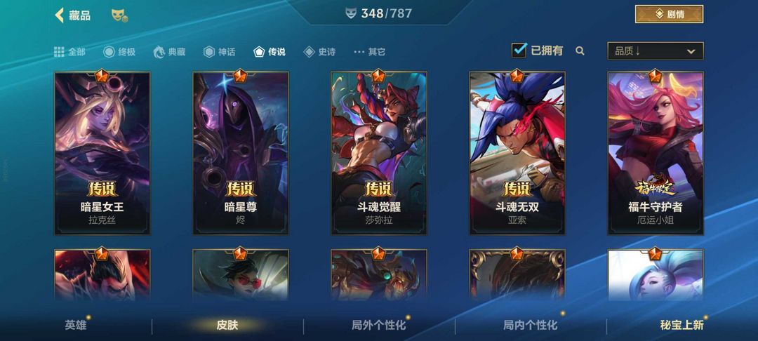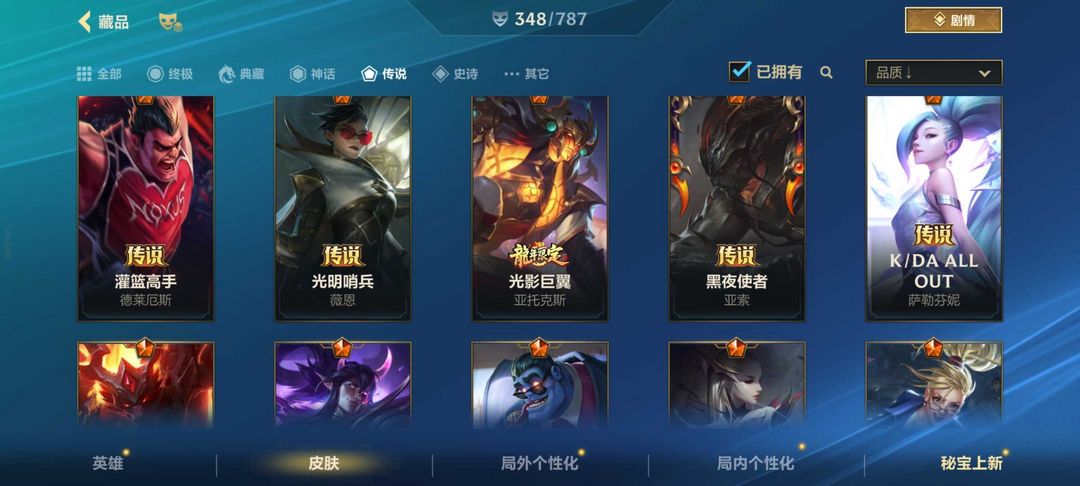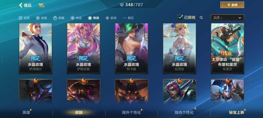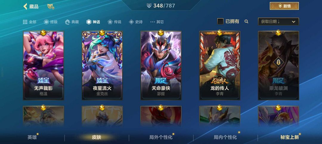 可排位❤️4神话40传说340皮❤️无声裁影格温❤️天命豪侠瑟提❤️水晶玫瑰萨勒芬妮阿卡丽