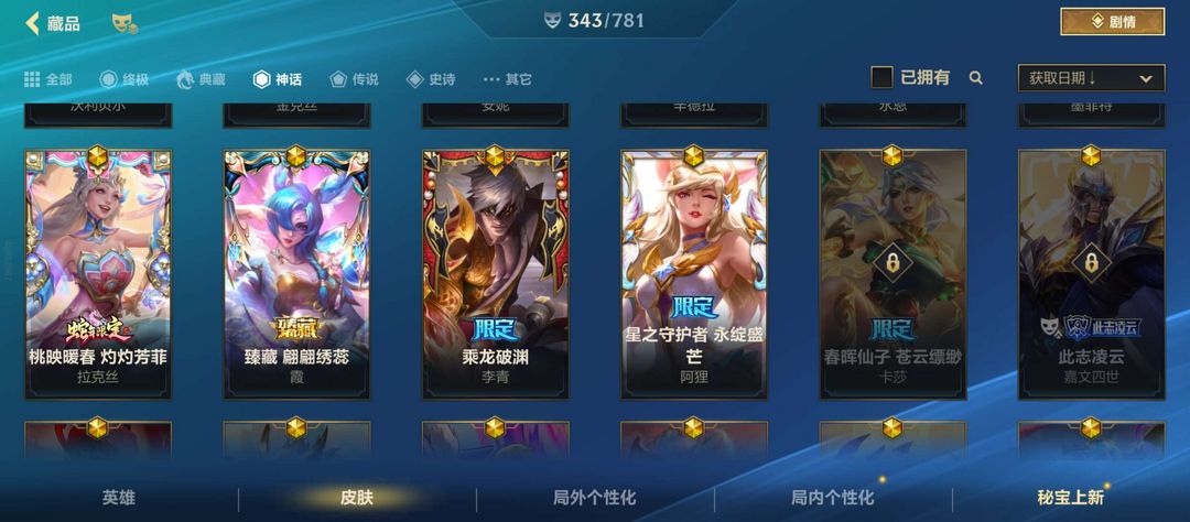 10神话47传说343皮/秘灵奇境婕拉/碧空长歌萨勒芬妮/神话霞安妮狗熊永恩辛德拉/水晶玫瑰卡莎