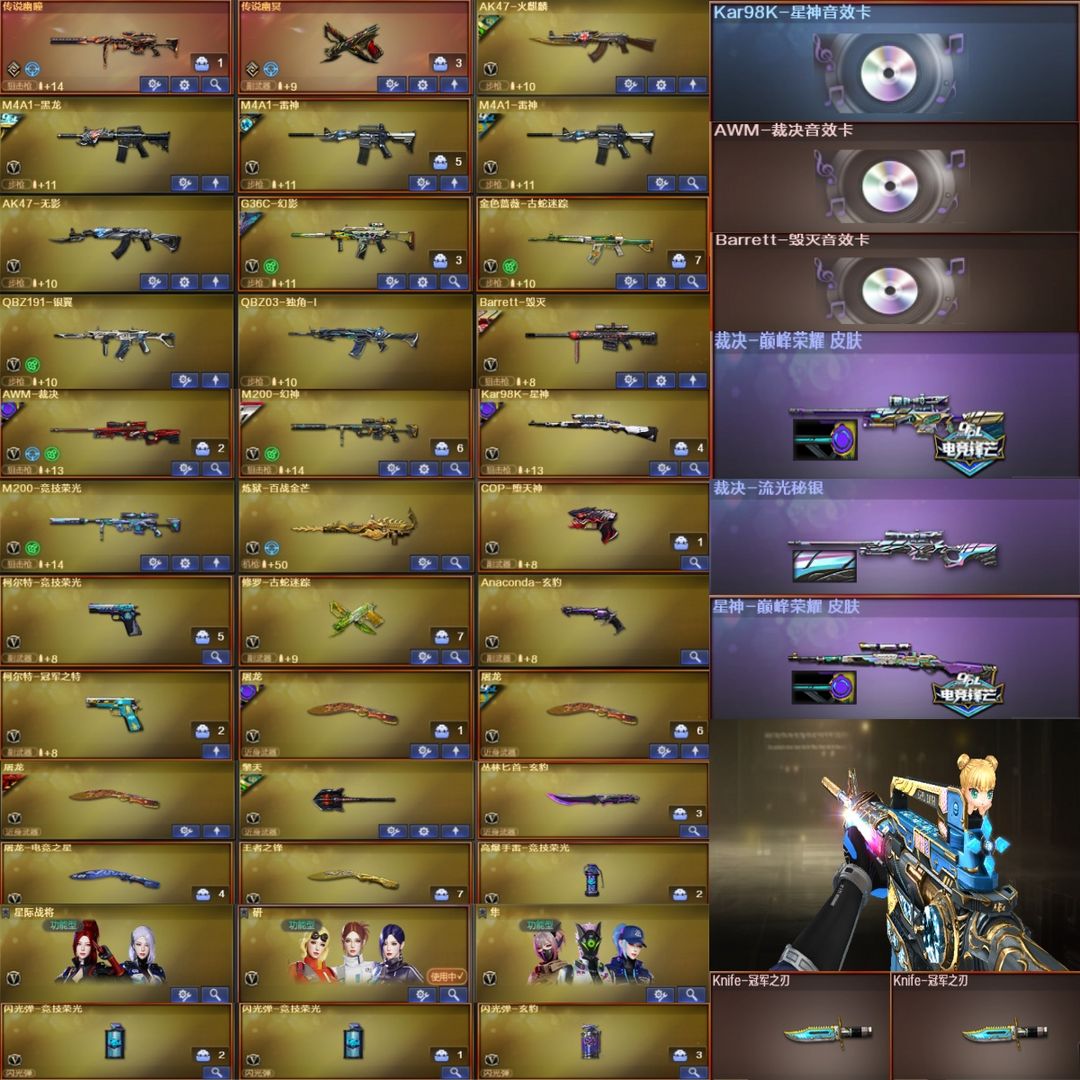 限制: 租号17次及以上 | 撤单率<50.00%才可租用此帐号装备描述:㊗️各位老板六六大顺,心想事成,万事如意。 王者武器:王者之锋-觉醒版 英雄武器:屠龙;AK47-无影;AK47-火麒麟;Barrett-毁灭;M4A1-雷神;M4A1-黑龙;M200-幻神;M200-竞技荣光;柯尔特-冠军之特;柯尔特-竞技荣光;烟雾弹-竞技荣光;闪光弹-竞技荣光;高爆手雷-竞技荣光;丛林匕首-玄豹;Anaconda-玄豹;闪光弹-玄豹;传说幽瞳;G36C-幻影;传说幽冥;Kar98K-星神;擎天;COP-堕天神;AWM-裁决 主武器:M4A1-雷神;贝雷塔687-迷彩;魂·雷神-诺拉;加利尔ACE-零号;雷蛇加特林;贝雷塔687-蓝色魅影;魂·HK417-朱雀-凤灵;M60-战神8;阿梅利轻机枪-暗夜风暴;M4A1-红色线条;末日裁决者;M14EBR 暗夜;C.A.T;Barrett-捣乱兔兔;M4A1-隐袭;M16-S;贝雷塔-甜蜜火力;AWM-蓝水晶;M37-春桃;M4A1-S;G36C-幻影;CPW-动力-潘多拉;AWM-A;烈火-喵星特勤;斯泰尔-巧克力;AWM-S-狂獠 副武器:胜利之火;沙鹰-枪王排位;COP-金蝉子-枪王排位;