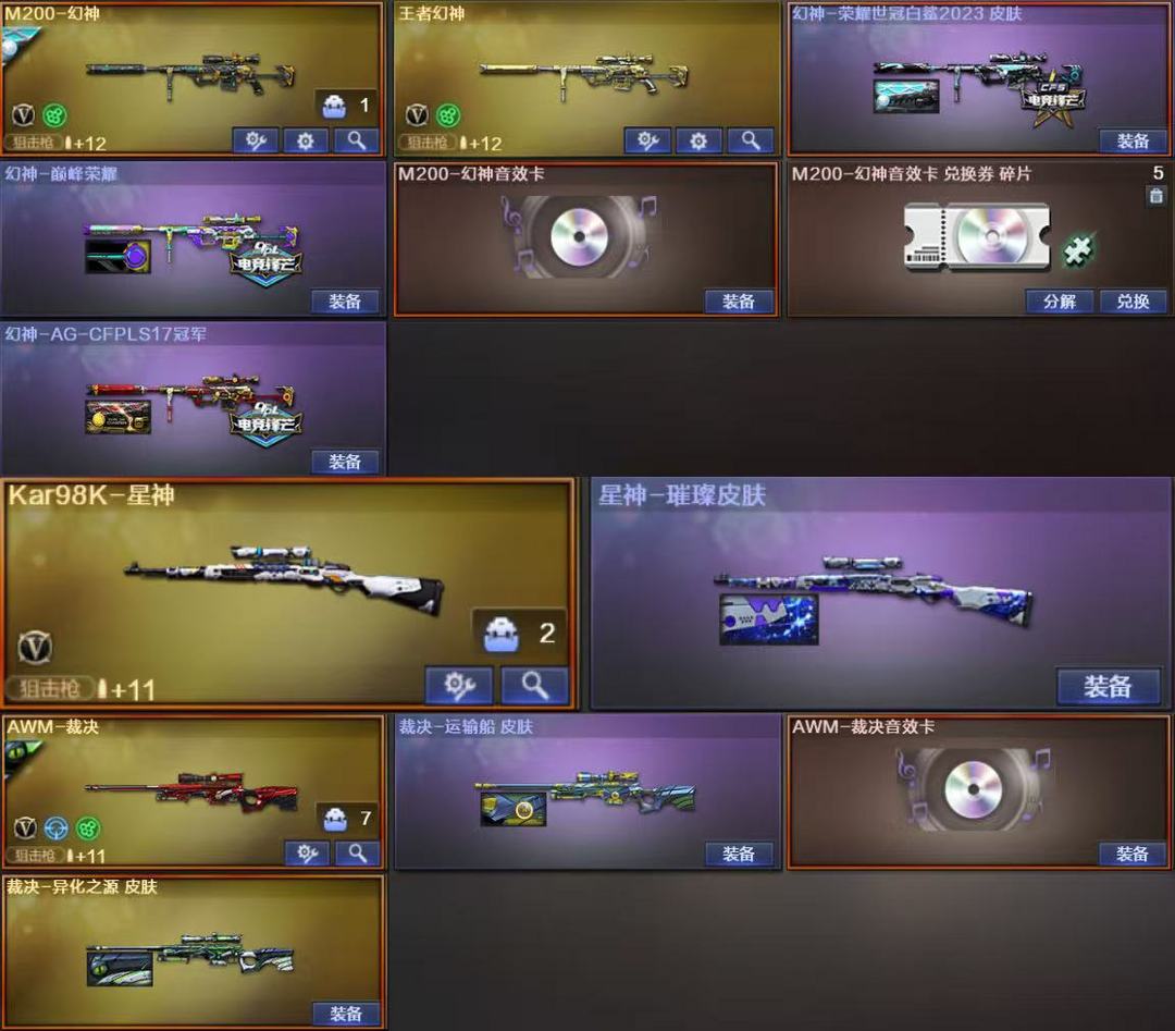159豆⭐幻兽5套裁决卡⭐幻神新白鲨巅峰AG音效卡⭐冠军之薇白虎AG⭐usp雷暴cop冠军之特之刃