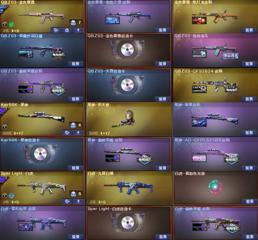 星骇幽瞳幻影圣谕玄豹⭐幻神音效卡光海夜岚星火小队13皮裁决音效卡流光⭐QBZ电竞宠儿6皮白虎巅峰荣耀