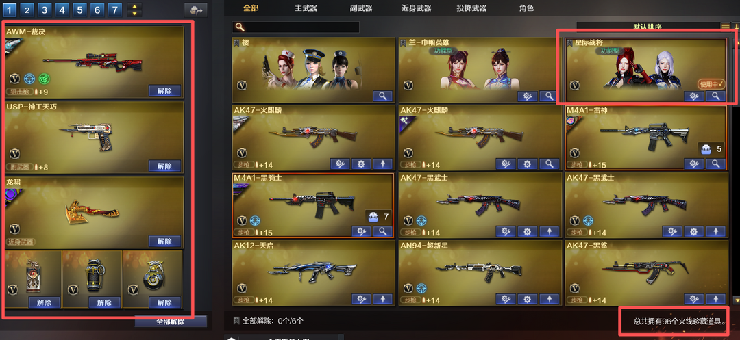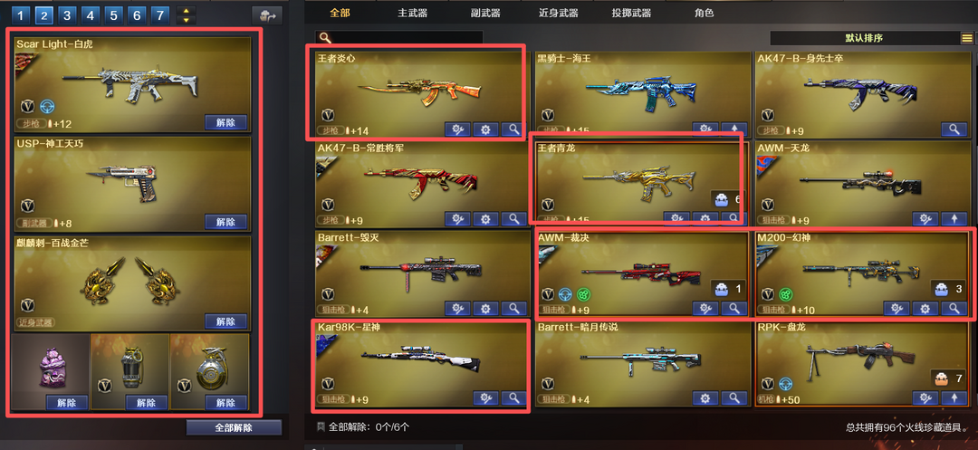 装备描述:北部⭐98V⭐裁决叶芒带卡+3USP+柯尔特⭐幻神骇客带卡⭐星神璀璨带卡⭐星际战将⭐白虎+古蛇套生化