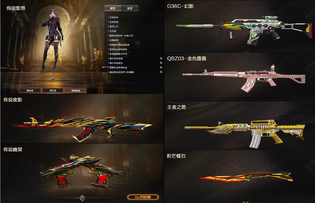 传说夜影幽冥影煞4防❤幻神电流光效+裁决运输船百城+星神❤幻影QBZ蔷薇+2柯尔特炽芒蝶刃❤3防隼