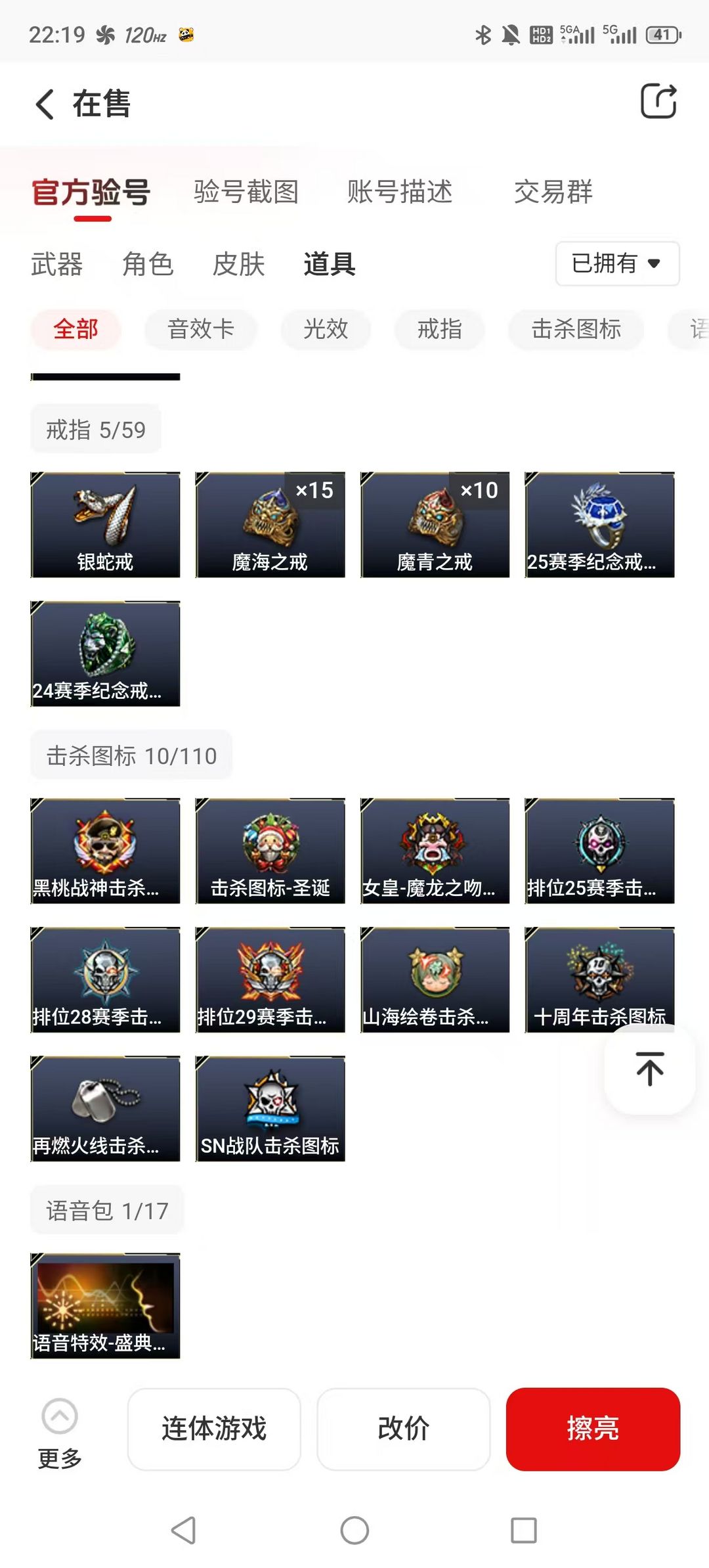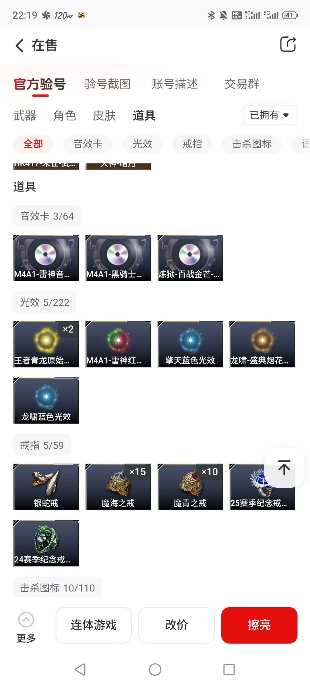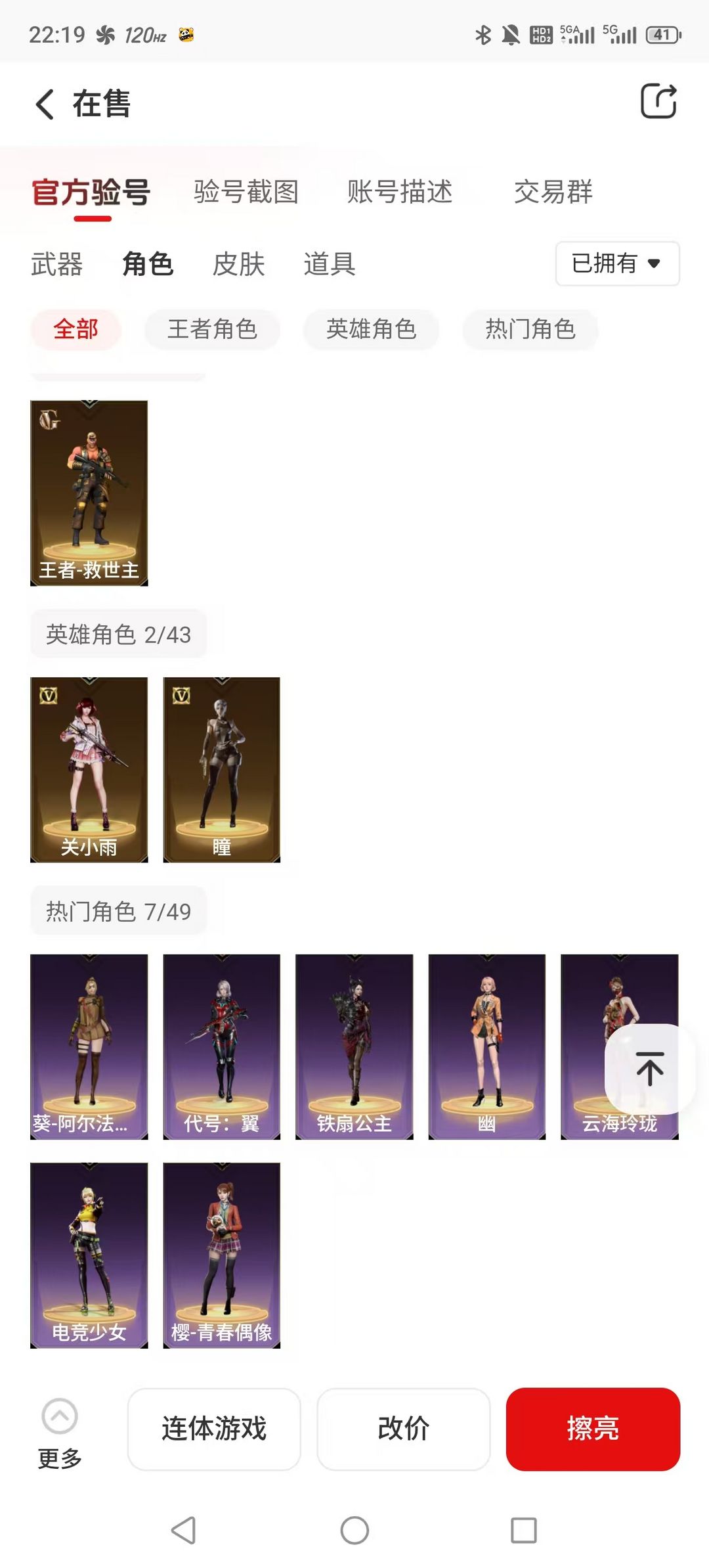 装备描述:王者武器:王者青龙;王者玉锋;王者之武-觉醒版;炫金千变;王者云击;炫金雷神 英雄武器:机械迷城-穹宇;黑武士-锦绣游龙;M4A1-青龙;AWM-天龙;AK12-天启;QBZ03-金色蔷薇;Barrett-极光;AK47-机械迷城;麒麟刺;M4A1-龙血;M4A1-玫瑰精灵;沙鹰-修罗;HK417-朱雀;9A91-烈火;Barrett-毁灭;M4A1-雷神;M4A1-黑骑士;AK47-火麒麟;M200-幻神;M4A1-死神;擎天;AN94-超新星;M4A1-千变;屠龙;M4A1-武圣;Glock18-武圣;汤姆逊-烈龙;龙啸 角色:瞳;关小雨;猎狐者;飞虎队;刀锋;潘多拉;雷霆-β;复仇者;堕天使;活力灵狐;G.E.M.邓紫棋;猎狐者-英特尔;娜塔莎;救世复仇;救世主;精英部队;灵狐者;烈锋;影武者-X;王者-救世主;龙儿;救世主-X;樱-青春偶像;剑齿虎-X;圣诞潘多拉-X;代号:翼;代号:翼;幽;芳心审判者;超能特工;风暴女;电竞少女;沃特X;蔚蓝;雷豹;潜龙队 道具:云山科技背包;绿色巨人;灵魂忍者;迷雾幽灵;疯狂宝贝;防化服;C4工具钳;手雷包;防弹衣;防弹头盔;疯狂宝贝;防化