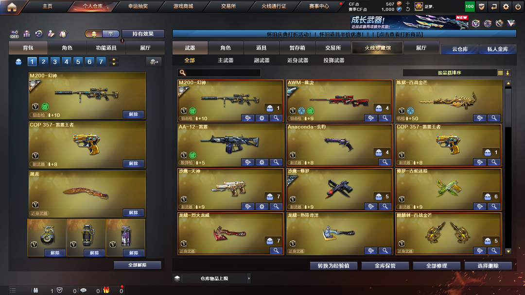 装备描述:• 主武器:M200-幻神、裁决、M4A1-雷神、Scar Light-白虎、金色蔷薇、G36C-幻影等热门步枪/狙击,涵盖主流枪械池; • 副武器:COP 357-雷暴王者、Anaconda-玄豹、沙鹰-天神/修罗等强力副武,手感拉满; • 近战/投掷:屠龙、龙啸等英雄级近战,高爆/闪光/烟雾全套王者级投掷,特效拉满; • 角色:隼、王者-热浪之夏、王者空等功能型角色,属性齐全; • 皮肤/音效:幻神-电流骇客等武器皮肤,多套音效卡/语音特效,颜值&体验双在线