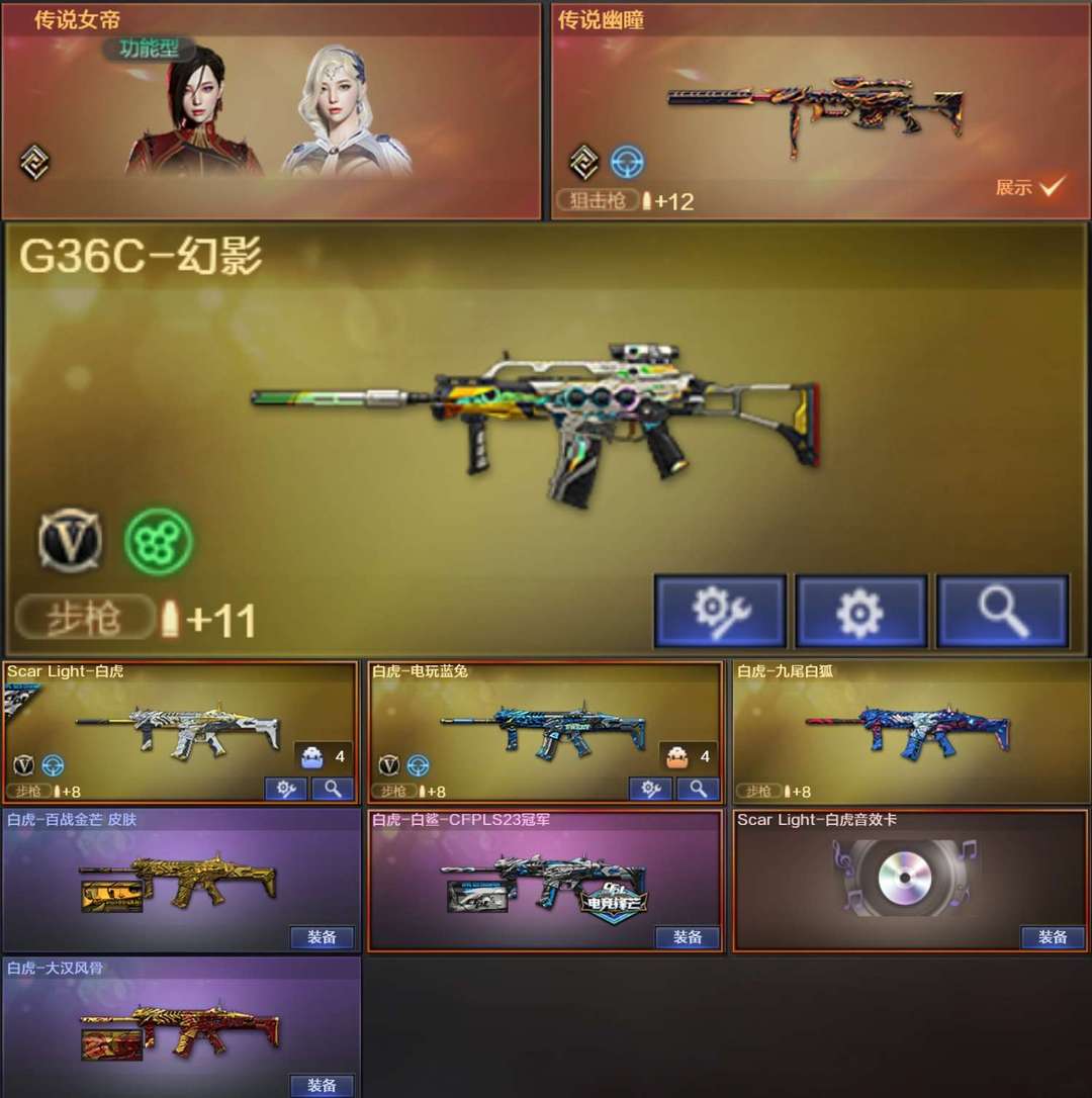 传说幽瞳女帝丨幻影G36C丨Ag24➕青鹤幻神星神裁决白虎满配丨副手满配九尾白狐马枪牛枪狮子USP