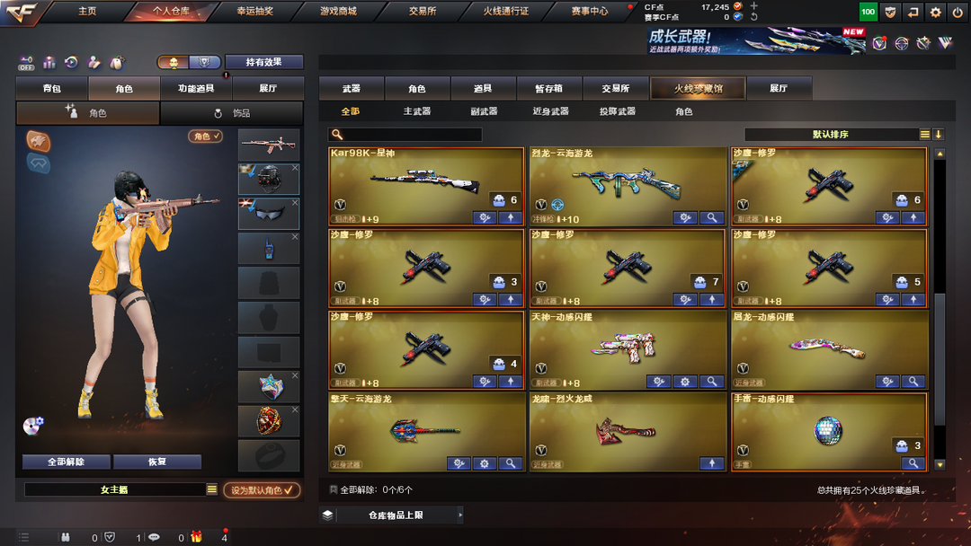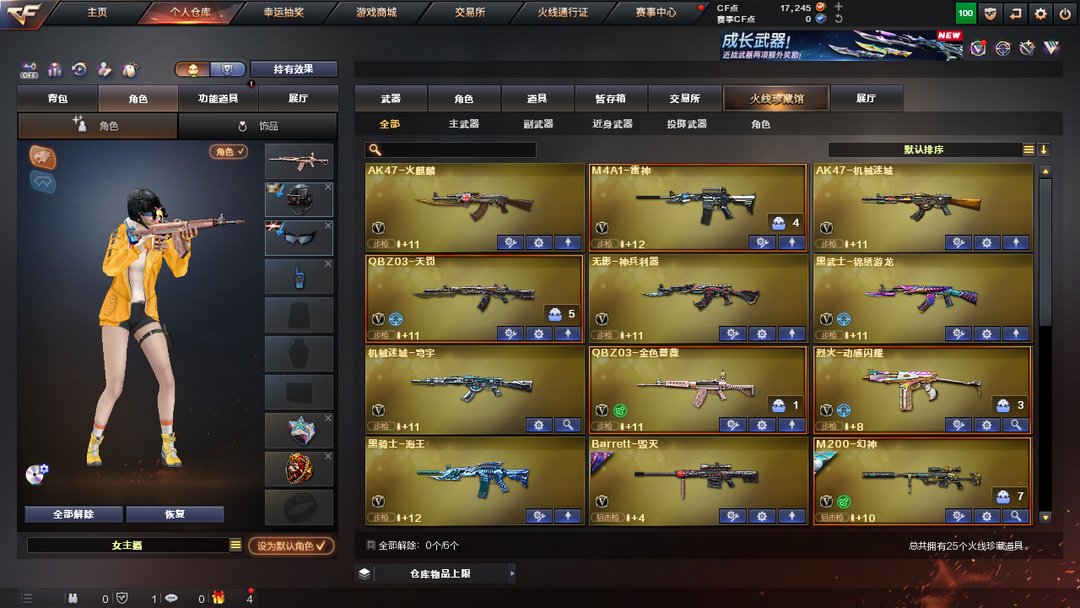 25V可排位带妹小号❤4防女主播+幻神+98K音效卡和QBZ天罚+5修罗+