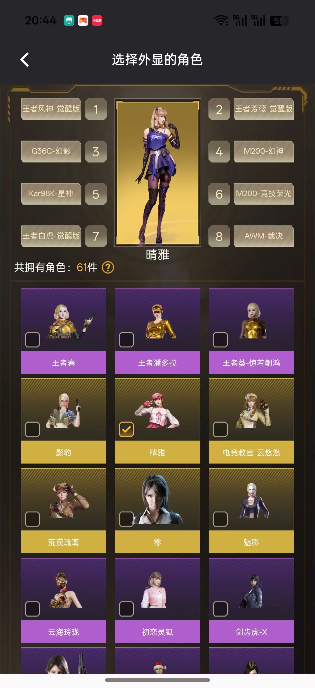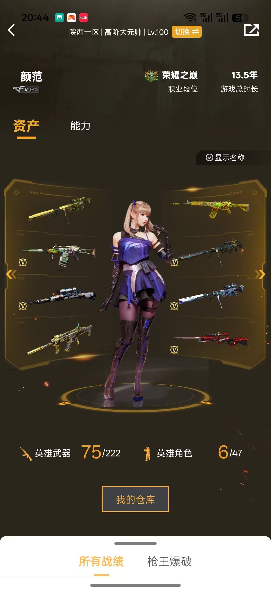 装备描述:王者武器:王者白虎-觉醒版;王者之幻-觉醒版;王者之烈-觉醒版;Barrett-雷霆王者;炫金骑士;王者之翼;炫金毁灭 英雄武器:M4A1-玫瑰精灵;汤姆逊-烈龙;手雷-云海游龙;擎天-云海游龙;G36C-幻影;HK417-朱雀;COP 357-幻灵;M4A1-幻灵;M4A1-青龙;M200-幻神;AK47-黑鲨;闪光弹-幻灵;烟雾弹-幻灵;高爆手雷-幻灵;幻灵之锋;龙啸-烈火龙威;9A91-烈火;沙鹰-修罗;AK12-天启;屠龙;Kar98K-星神;QBZ03-金色蔷薇;AK47-无影;AK47-火麒麟;USP-雷暴;高爆手雷-竞技荣光;烟雾弹-竞技荣光;M200-竞技荣光;闪光弹-竞技荣光;柯尔特-竞技荣光;擎天-竞技荣光;Barrett-朱雀;沙鹰-天神;RPK-盘龙;荣耀世冠-柯尔特;AWM-裁决;高爆手雷-雷暴;烟雾弹-雷暴;闪光弹-雷暴;斩神刀-雷暴;加特林-炼狱;AA-12-雷霆;M4A1-黑骑士;麒麟刺;M4A1-死神;M4A1-武圣;M4A1-黑龙;AWM-天龙;M4A1-雷神;M4A1-龙血;M4A1-猎神;Barrett-毁灭 角色:零;魅影;影豹;电竞教官-云悠