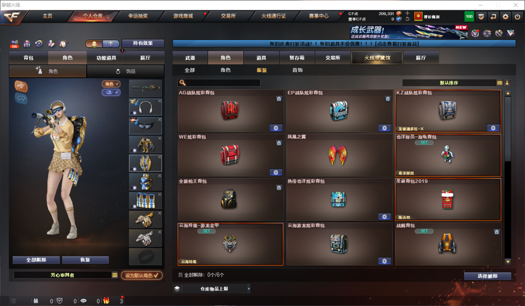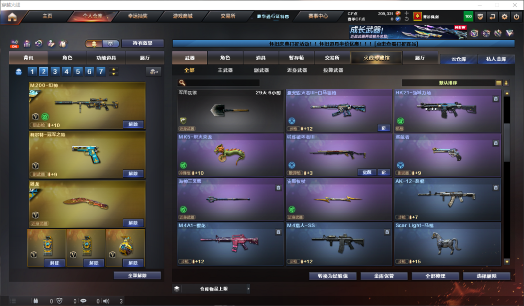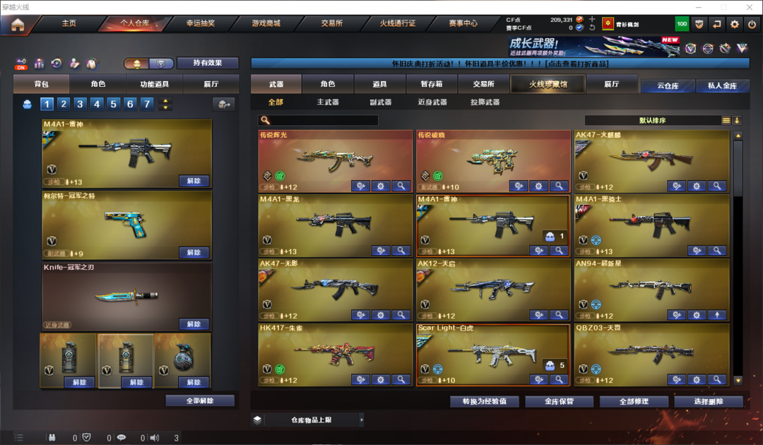 装备描述:王者武器:COP 357-雷霆王者-觉醒版;烟雾弹-雷霆王者-觉醒版;闪光弹-雷霆王者-觉醒版;高爆手雷-雷霆王者;王者星霆;王者之心-觉醒版;王者玉锋;王者之翼-觉醒版;王者霜心;炼狱-悦蓝-觉醒版;王者森决-觉醒版 英雄武器:高爆手雷-玄豹;烟雾弹-玄豹;柯尔特-荣耀世冠白鲨2023;屠龙;擎天;Barrett-暗月传说;烟雾弹-竞技荣光;闪光弹-竞技荣光;AK47-无影;沙鹰-天神;超新星-热带奇洋;M4A1-猎神;QBZ03-天罚;龙啸-热带奇洋;手雷-热带奇洋;COP 357-云龙;汤姆逊-烈龙;云龙扇;烟雾弹-云龙;高爆手雷-云龙;闪光弹-云龙;斩神刀-雷暴;雷霆之锋;Scar Light-白虎;高爆手雷-雷霆;烟雾弹-雷霆;闪光弹-雷霆;高爆手雷-雷暴;烟雾弹-雷暴;闪光弹-雷暴;传说破晓;黑武士-锦绣游龙;柯尔特-冠军之特;G36C-幻影;HK417-朱雀;烈龙-云海游龙;擎天-云海游龙;手雷-云海游龙;AA-12-雷霆;龙啸;AWM-裁决;Barrett-极光;幻灵之锋;闪光弹-幻灵;烟雾弹-幻灵;高爆手雷-幻灵;COP 357-幻灵;M4A1-黑龙;AN94-超新星