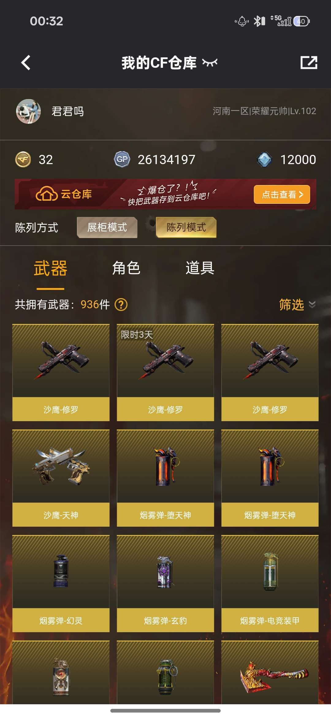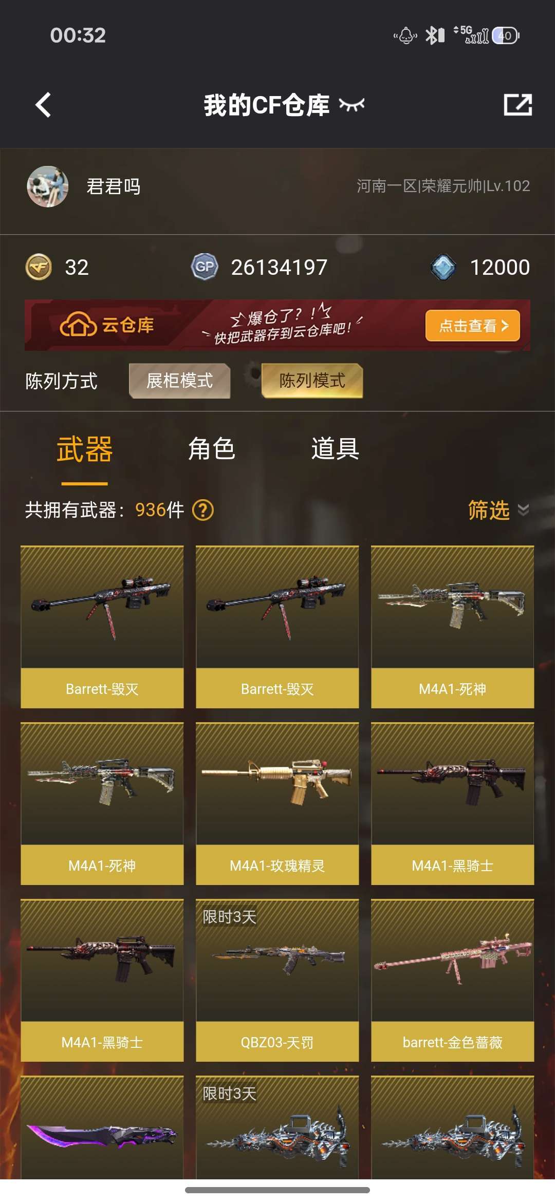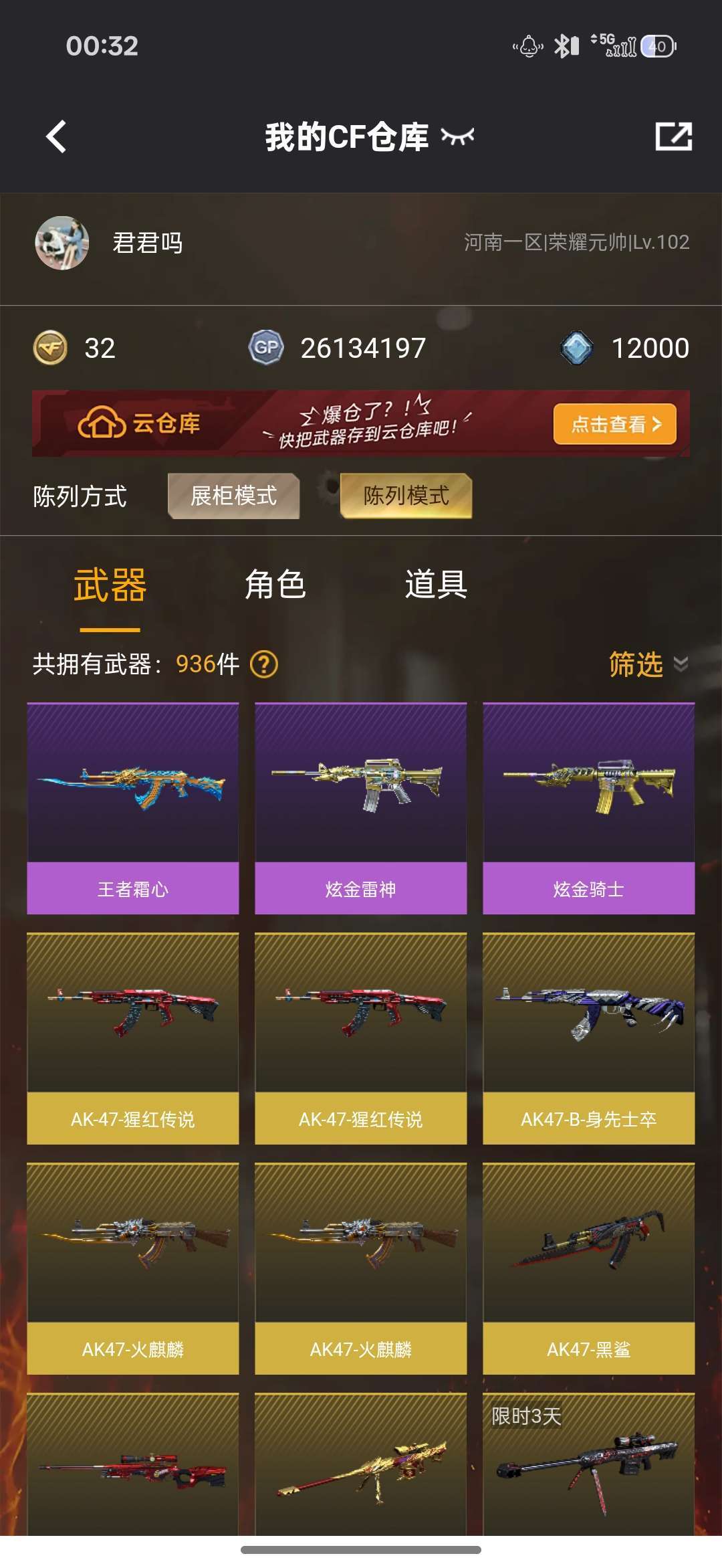 游戏区服:穿越火线-网通区-河南一区