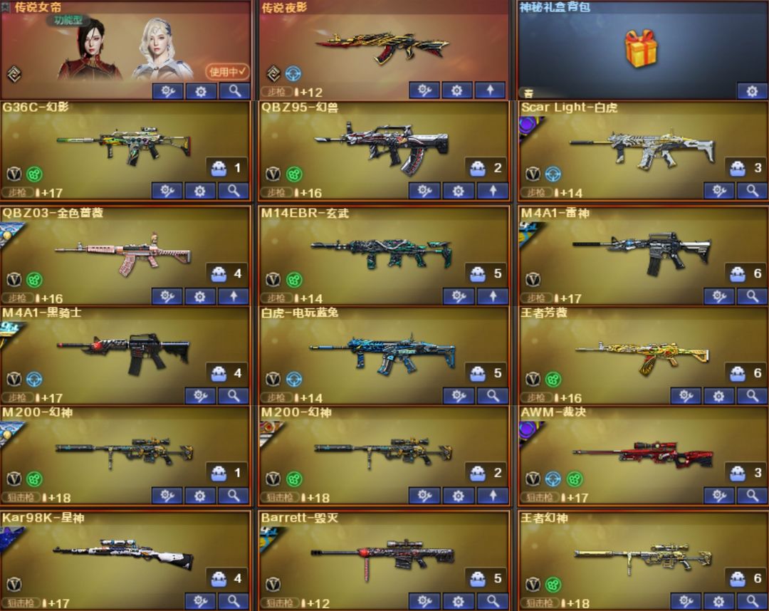 5套幻兽女帝EP全套金名幻影4EP特⭐幻神音效卡EPAG5皮⭐裁决音效卡5皮⭐QBZ冠薇3皮白虎AG