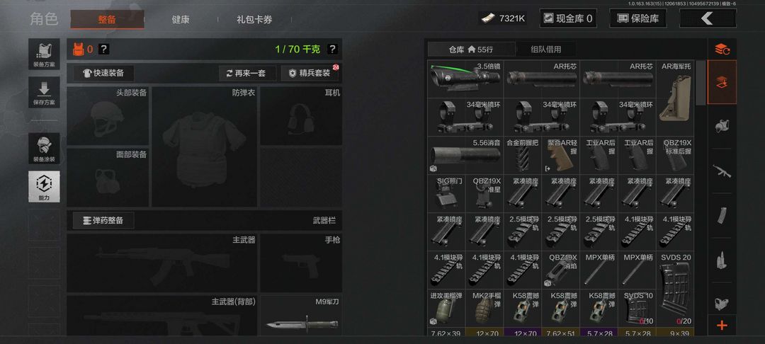 装备描述:暗区突围 7M 七百万纯币禁止利用账号进行开挂、使用辅助违规软件诈骗等违规操作。请游戏局内保持文明,防止禁言影响他人游戏,祝您玩得愉快!