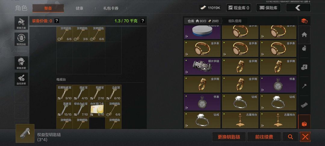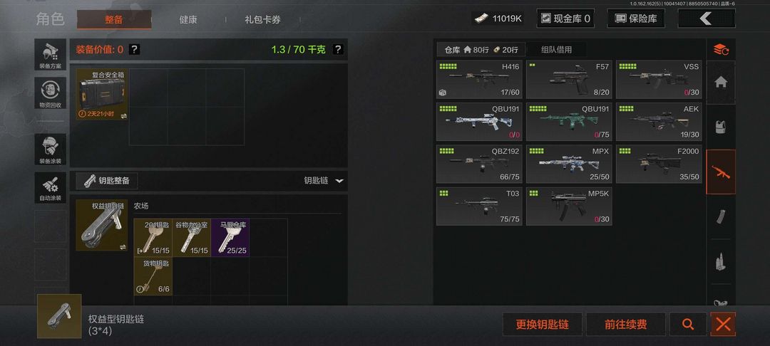 装备描述:赚点零花钱,有1100万keb,一些钥匙,一些物资