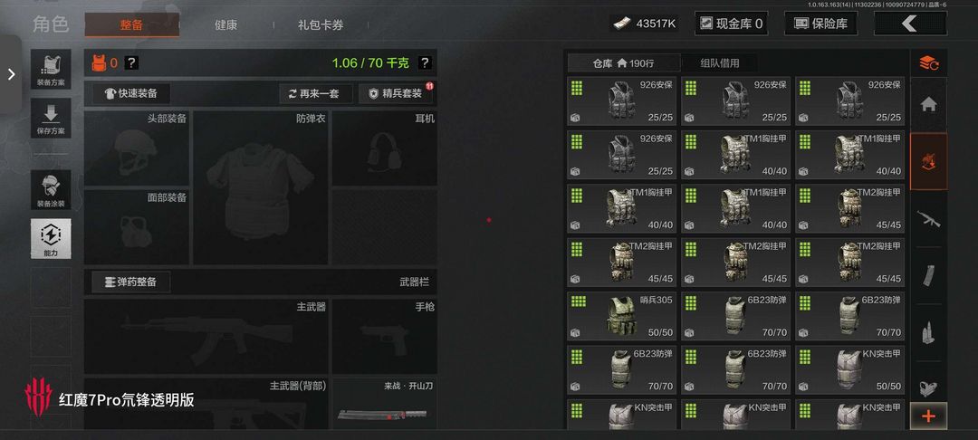 装备描述:[科恩币43517k仓库价值47.7M]有2*3保险2天,1张开2*3天数保险卡