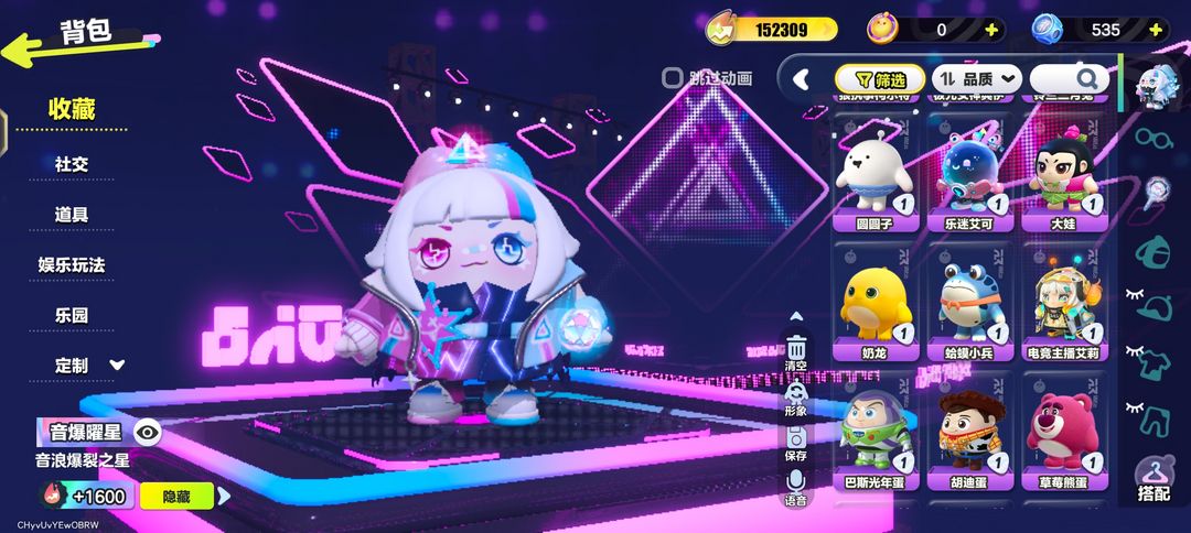 装备描述:15万潮流 音爆曜星 金鹿车 暗夜皇女德茜拉 烛光精灵夜清 飞天舞姬莲若 星际莱克 ,醒狮蛋宝 焰心龙女芙瑞 浪花黛露珊 太空船长贝贝 蔷薇白皇后 川剧少女梧桐DongDong;红小豆;朱迪蛋;奶龙;蛤蟆小兵;大娃;飞天小猪班尼;貔貅福福;泡澡蛙呱呱;巴斯光年蛋;草莓熊蛋;胡迪蛋;巴扎黑;打菜侠妙妙;圆圆子;长草颜团子;航天员莱卡