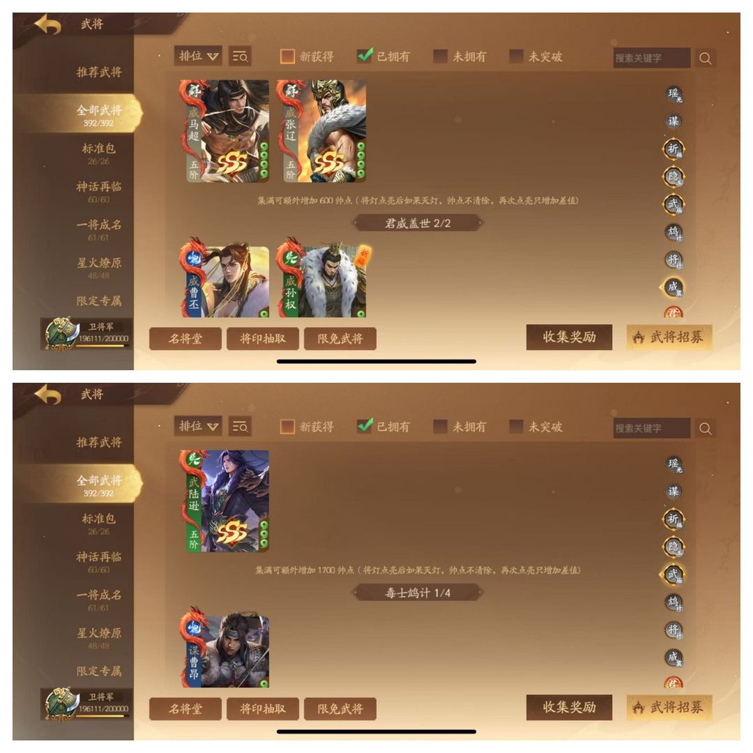 卫将军400将/武陆逊五威六神武/谋姜维威马超威曹丕威张辽威孙权夏侯玄许靖动二刘动崔令仪柏灵筠柳婒