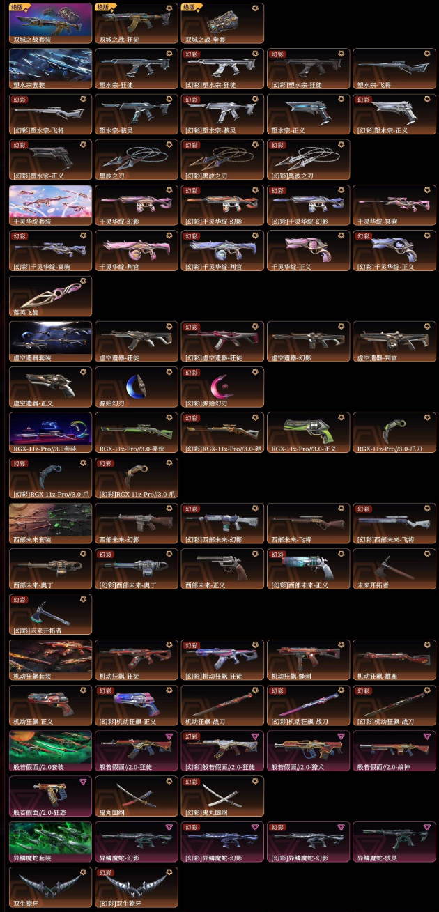 千灵狂徒25冠军22冠光荣狂徒西部塑水宗显卡般若机动狂飙掠影异鳞魔蛇vct爪夜刃诡镰奇点蝴蝶镭切