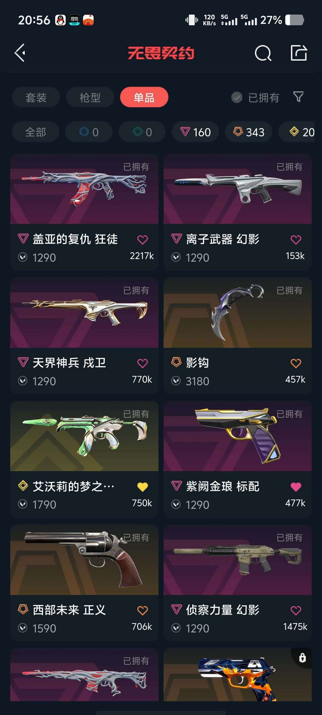 高校特权,全英雄,掠夺爪,盖亚ak,侦察,离子m4,天界盖亚戍卫,西部正义,紫金标配,猫猫骇灵等