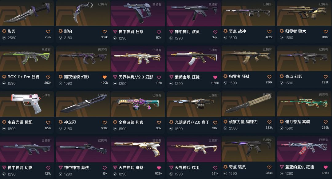 可排丨精品影钩掠夺爪刀丨神之刃蝴蝶刀丨紫金盖亚归零者显卡狂徒丨神中神罚黯夜怪谈丨天界鬼魅丨苍龙大狙