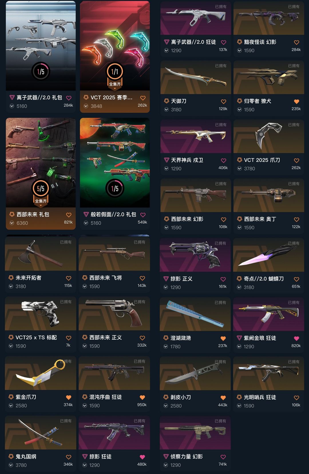 禁排★VCT爪刀离子2.0西部未来★混沌掠夺紫金ak★太刀奇点蝴蝶刀天玄刀剥皮小刀★侦查力量天界戍卫