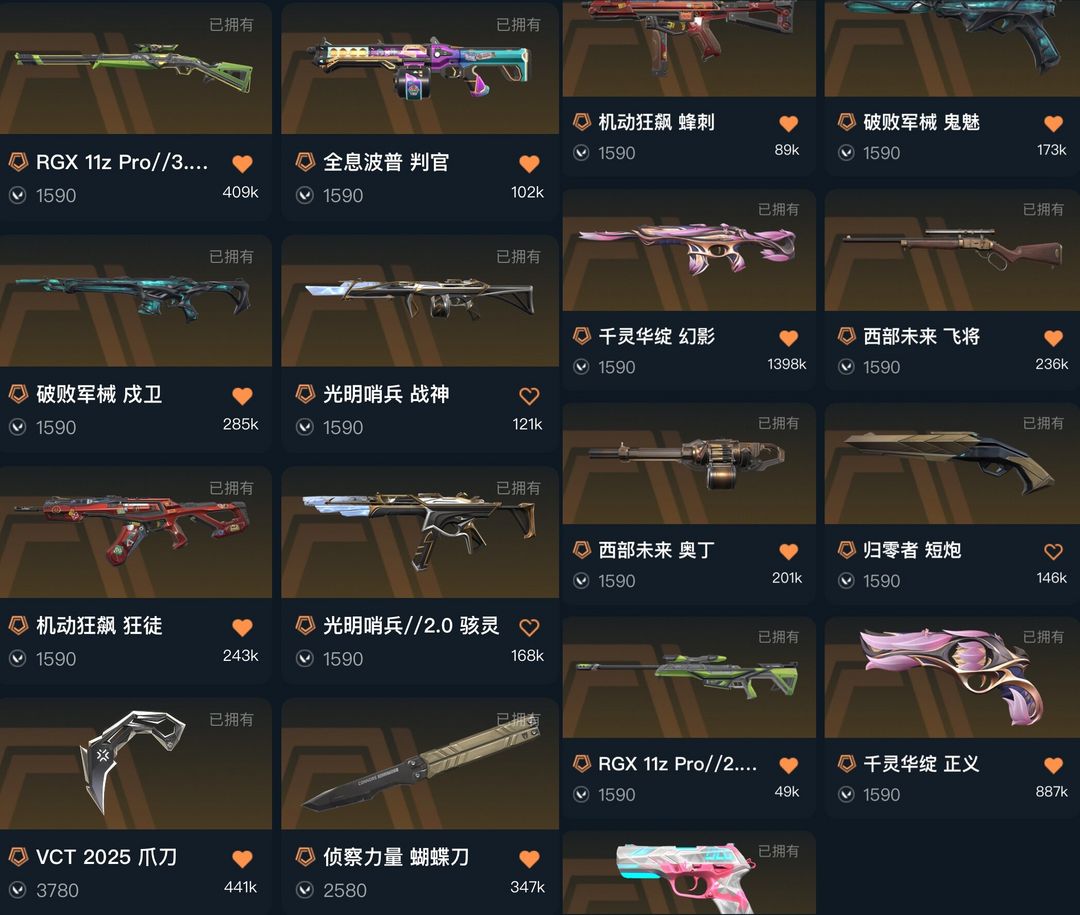 可排✅vct爪刀蝴蝶刀★千灵华绽★西部未来★破败戍卫★显卡冥狙★vct标配★显卡莽侠★光明哨兵★全息