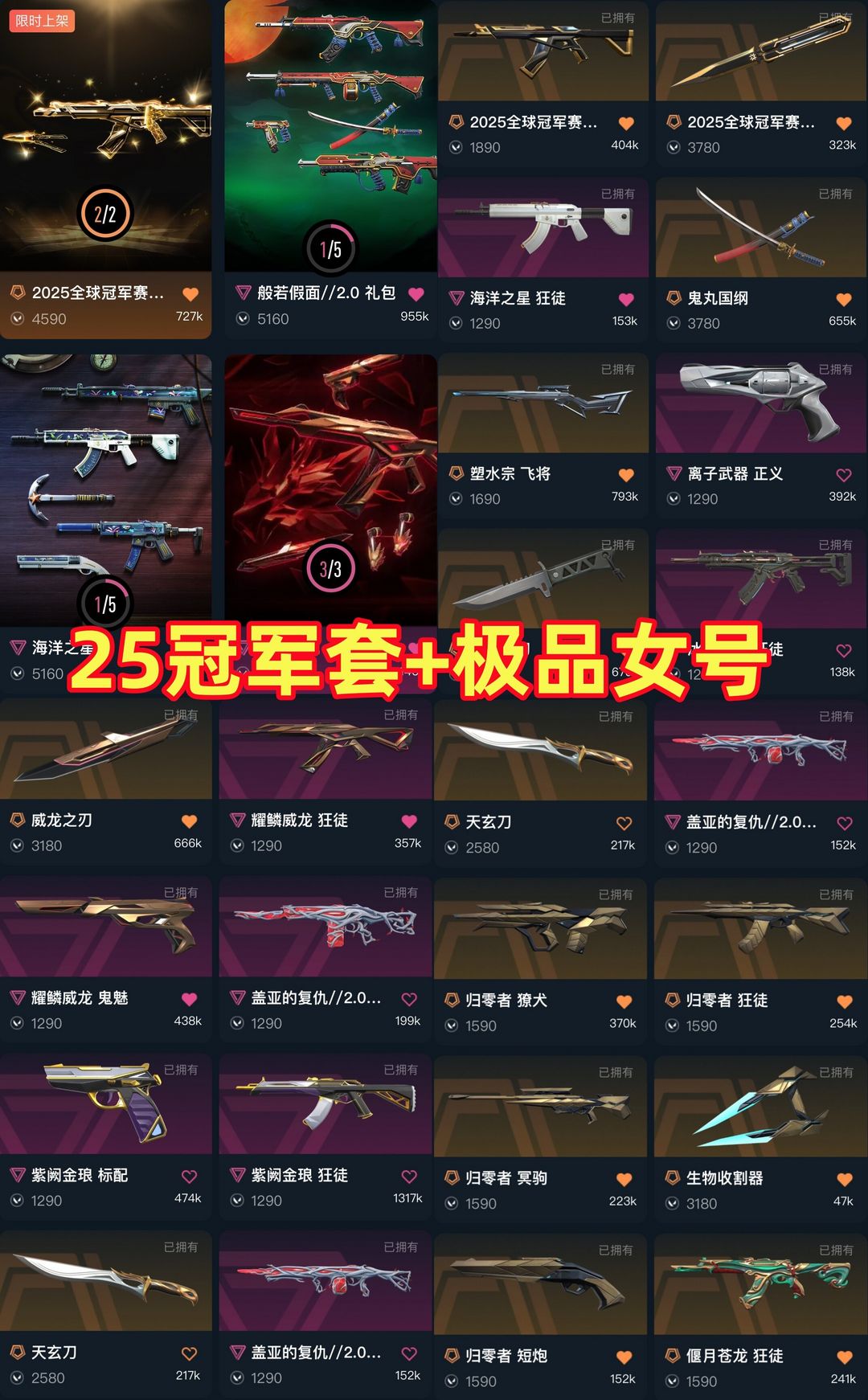 可排❤️25冠军套❤️海洋之心冰点威龙归零者紫金苍龙❤️威龙之刃剥皮小刀天玄刀太刀❤️塑水宗飞将