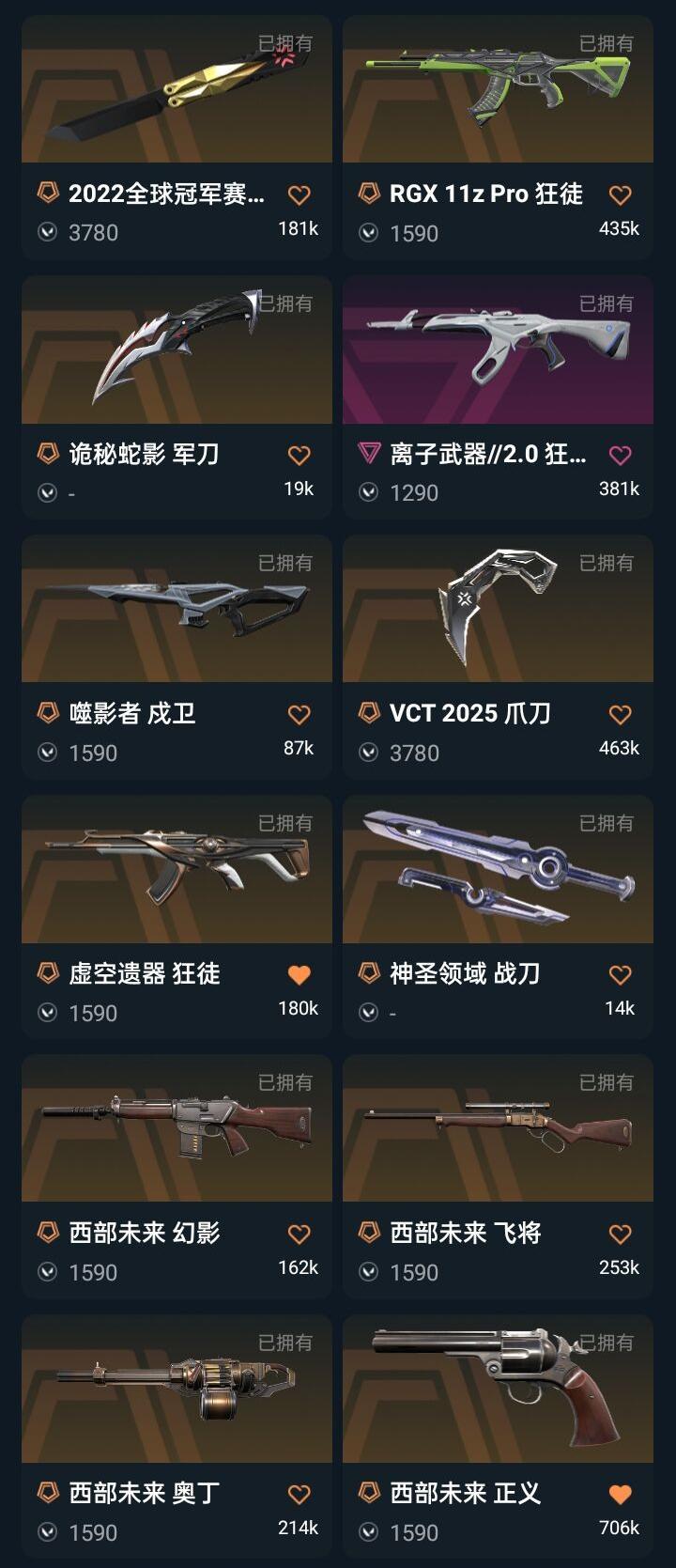 禁排 冻结点号主解冻 2025冠军套2022冠军套VCT2025爪刀全特效 西部未来套光明哨兵套全