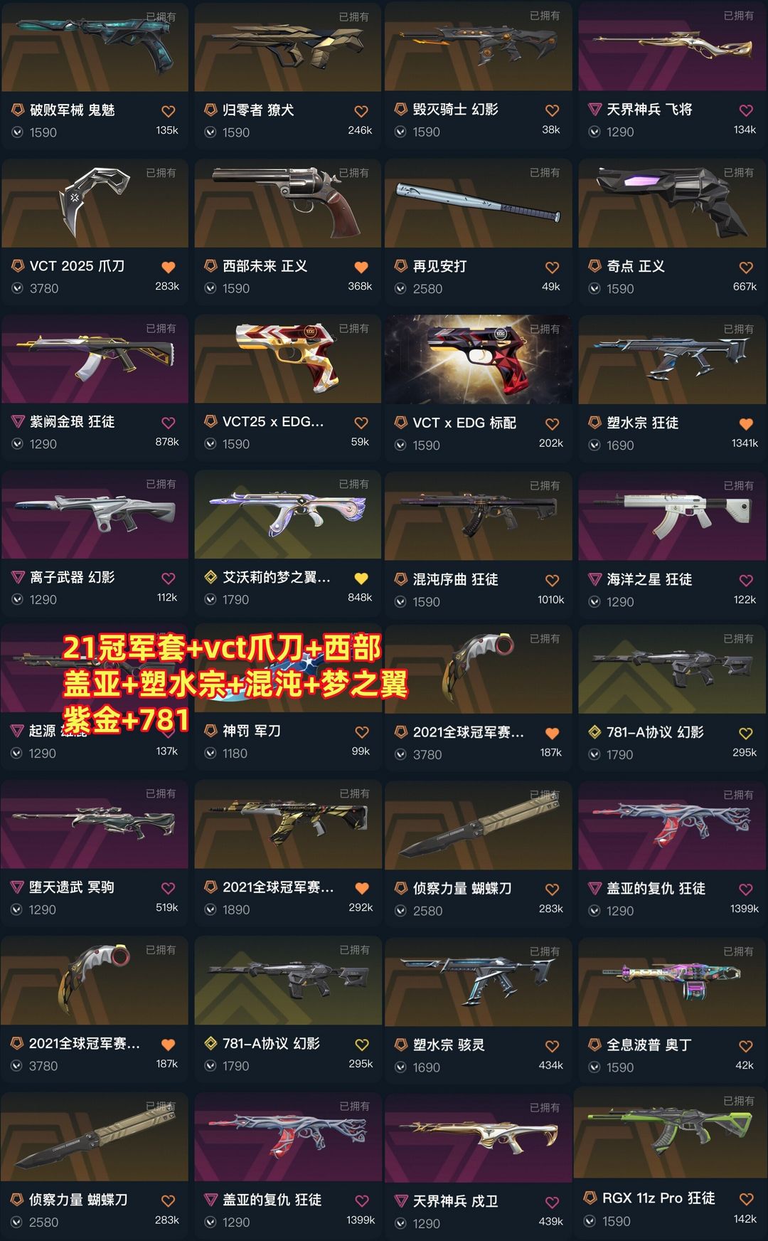 禁排✅显卡ak显卡1.0⚡VCT爪刀⚡西部未来⚡21冠军套⚡塑水宗奇点紫金混沌离子⚡781艾沃莉