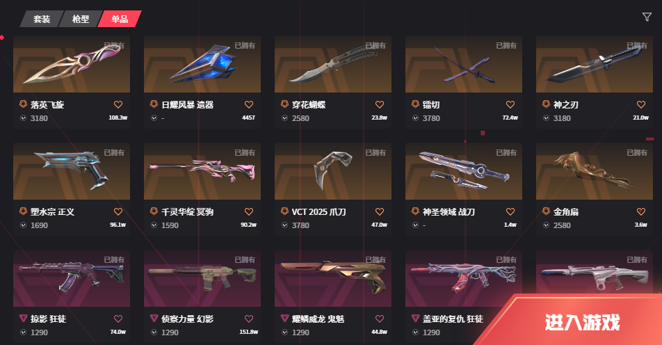 可排位 盖亚掠夺威龙狂徒❤️侦察离子幻影❤️VCT爪刀镭切落英飞旋神之刃穿花蝴蝶❤️塑水正义莲花冥驹