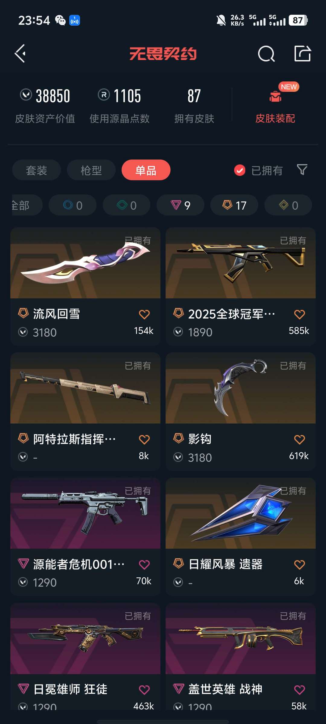 【可排位]全特效顶级库存流风回雪已拿下25冠军/24冠军套/混沌/镭切/掠夺爪刀/显卡ak特效全解锁