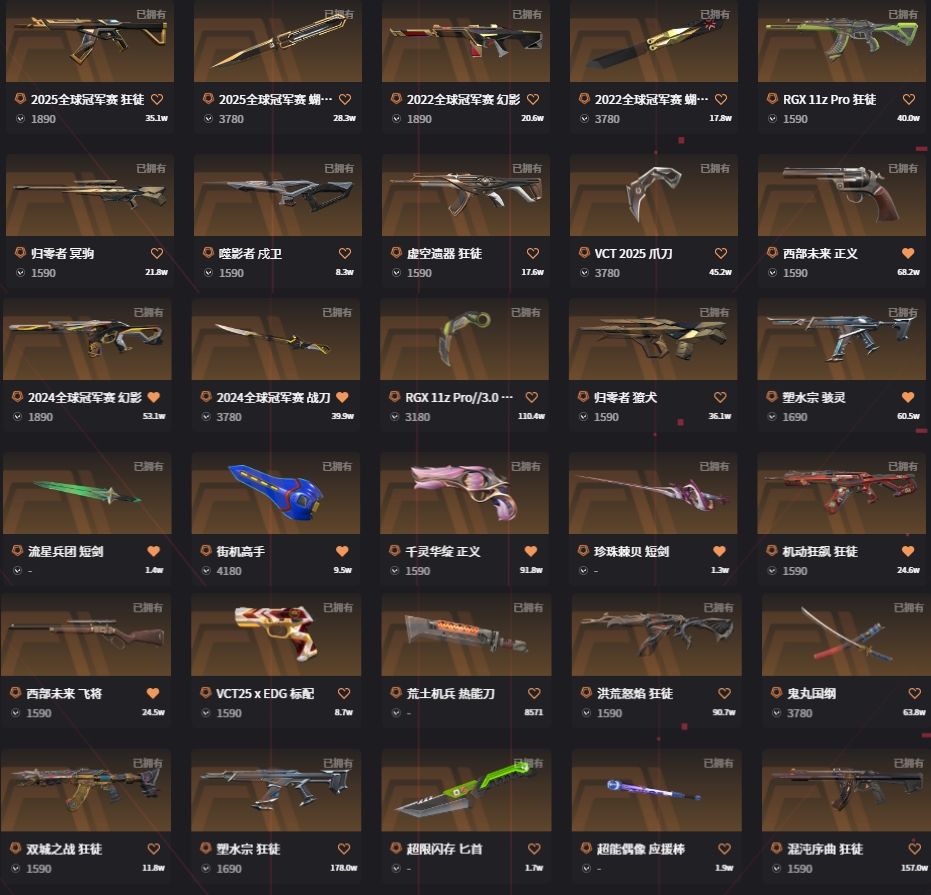 可排⚡冻结重登即解⚡9万库存⚡24/25/22套⚡VCT爪显卡爪威龙刃太刀⚡混沌素水洪荒盖亚紫金侦查