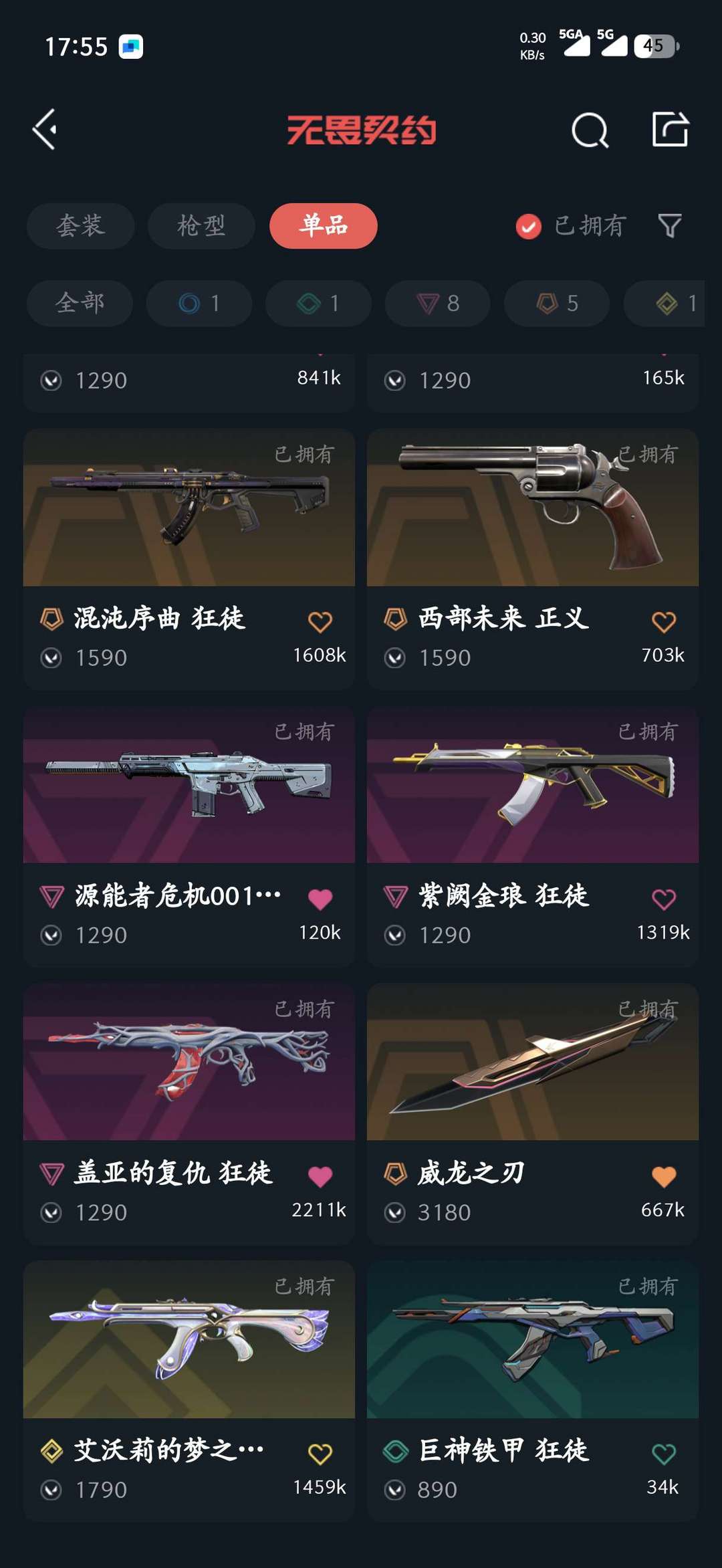 武器皮肤数量:54