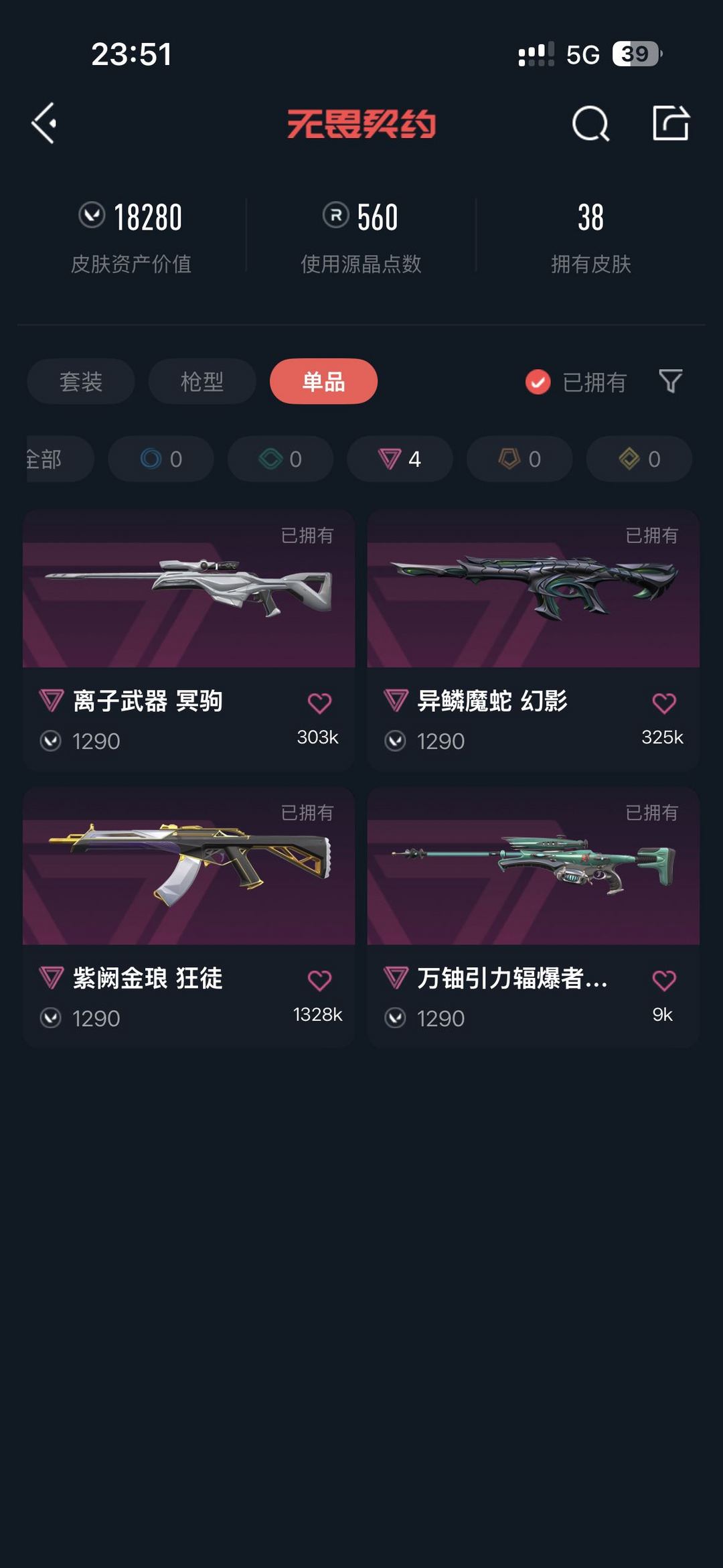 武器皮肤数量:38