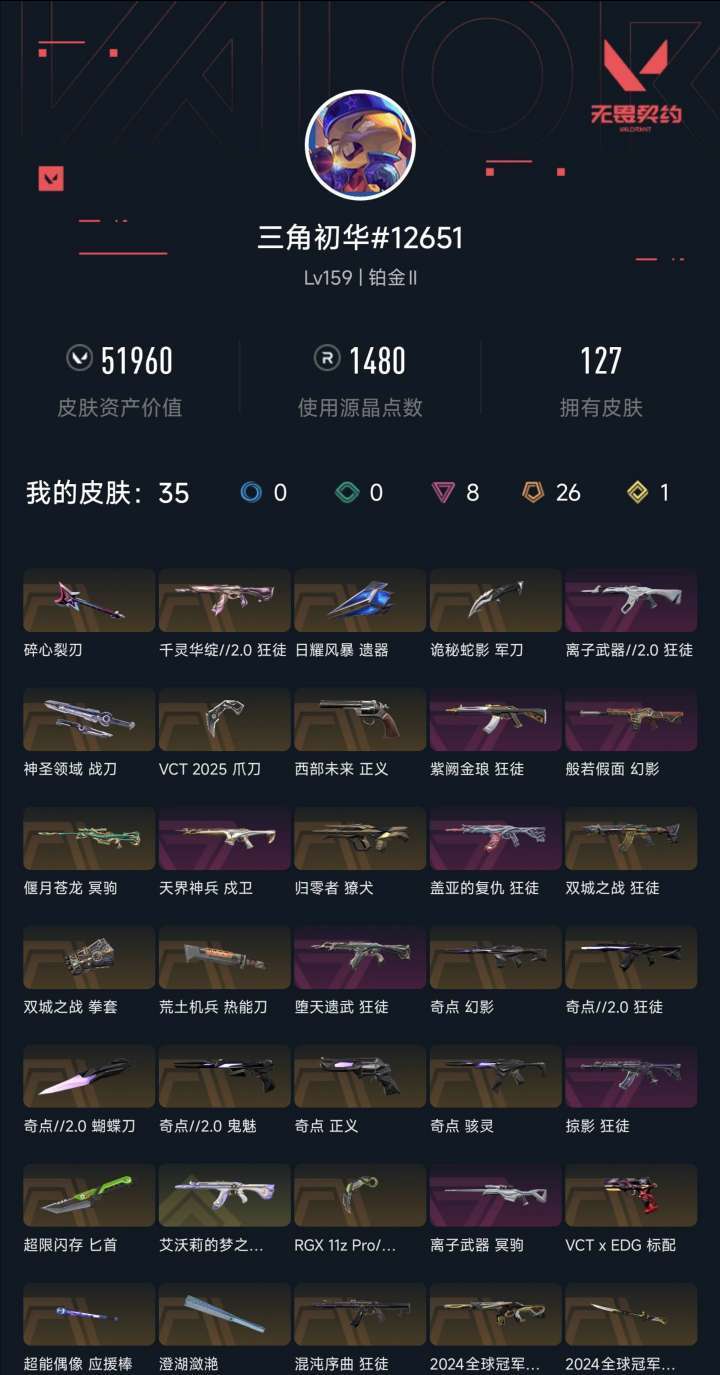 装备描述:可排位 炸鱼别炸太狠了 不然极其容易封号 刀:VCT爪刀 显卡爪刀 太极扇 奇点蝴蝶刀2024全球冠军赛直刀 正义:奇点正义 西部未来正义 狂徒:盖亚的复仇 混沌序曲 紫金狂徒 猫猫AK (艾沃莉的梦之翼)离子武器狂徒 双城之战AK 奇点AK 标配: 2024EDG标配 大狙:偃月苍龙大狙 离子大狙 幻影:2024全球冠军赛幻影 恶鬼般若假面幻影 奇点幻影 鬼魅:奇点鬼魅 斗牛犬:归零者 戍卫:天界戍卫