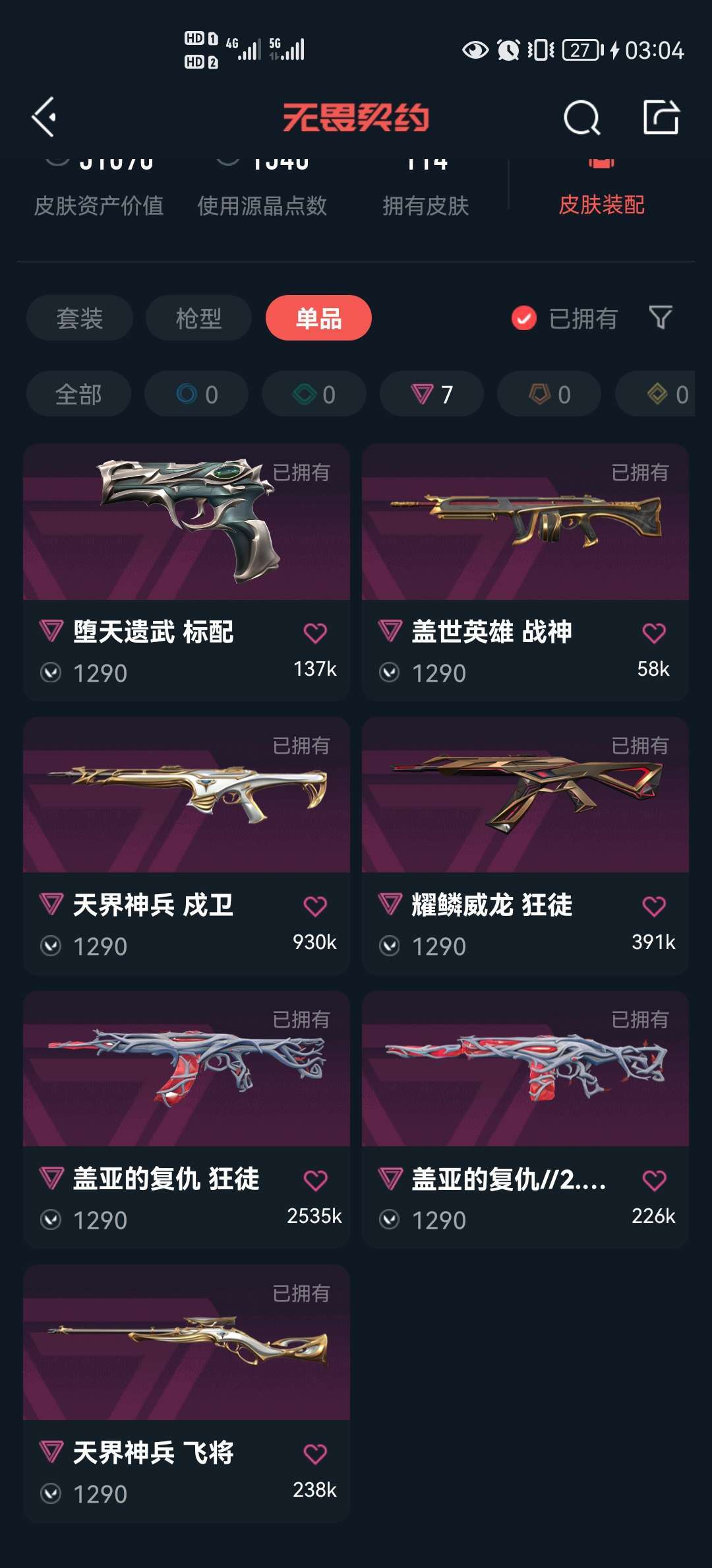 武器皮肤数量:114