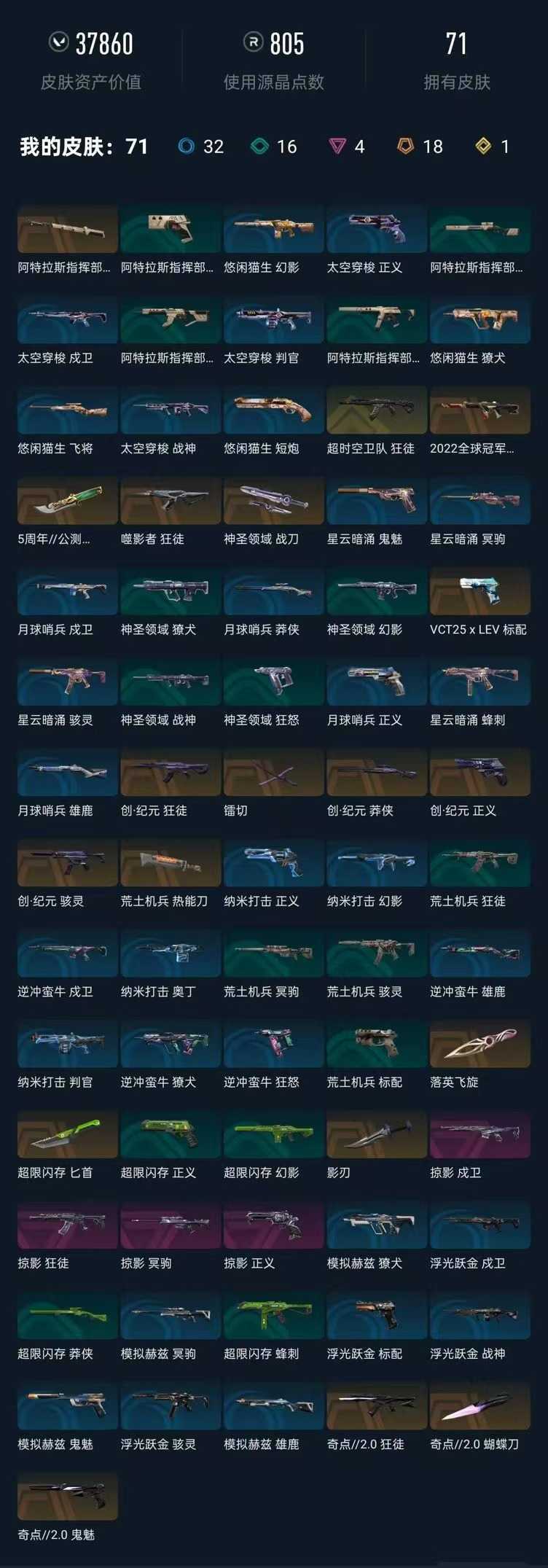 武器皮肤数量:71