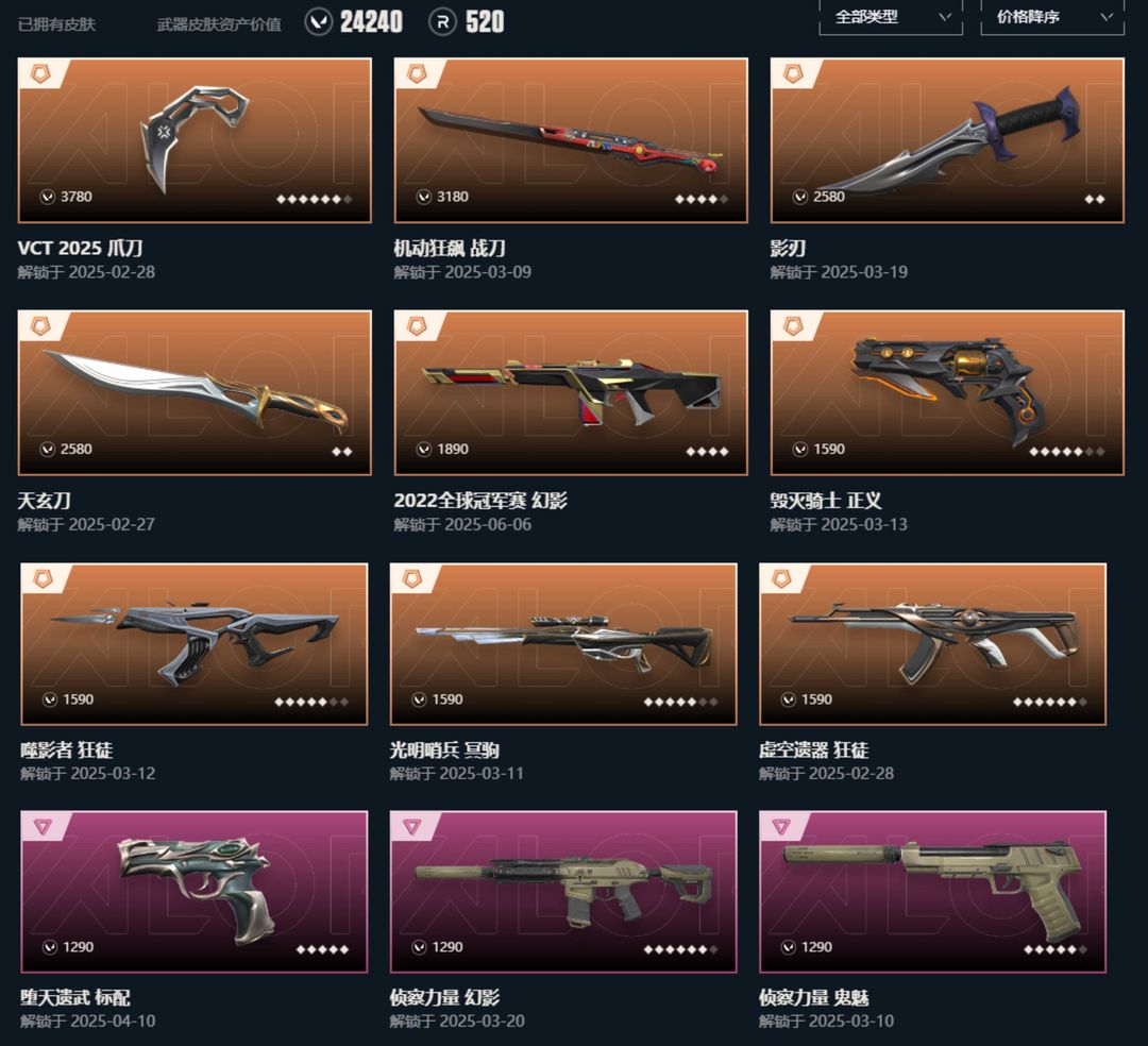 VCT爪天玄刀/影刃机车刀/虚空遗器噬影者狂徒22冠军侦察幻影/堕天标配侦察鬼魅哨兵冥驹