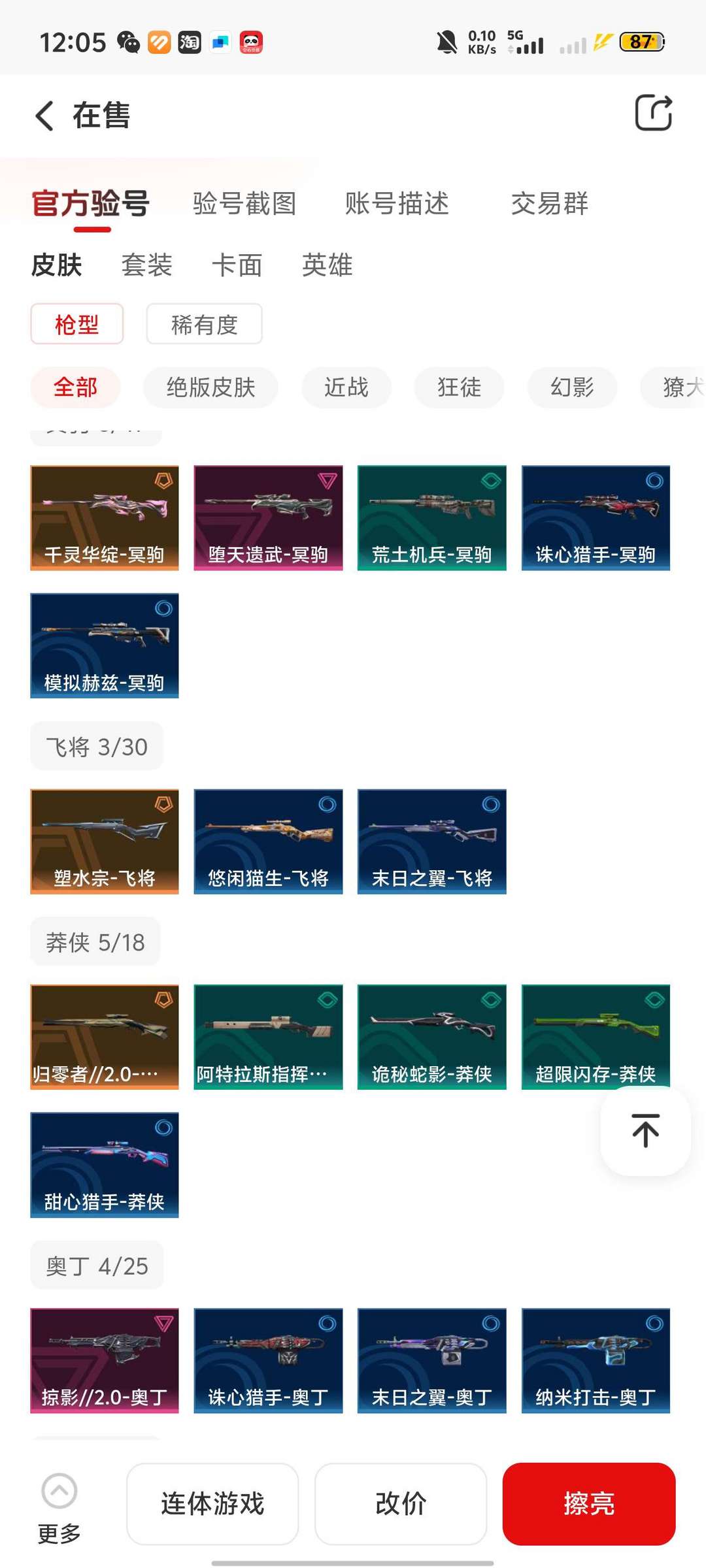 除战神都有主战皮,刀皮四,狂徒五,幻影三,大狙二