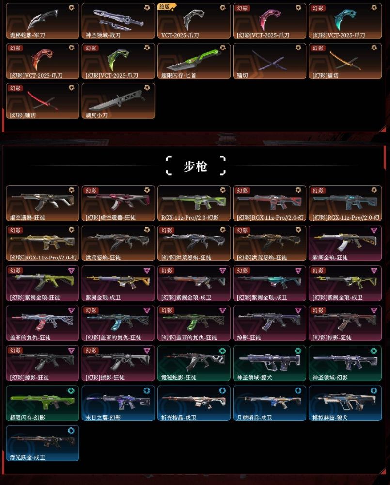 可排位✨精品库存1000R✨VCT爪刀/雷切/剥皮✨虚空/流脓/盖亚/紫金/掠影狂徒✨显卡幻影/紫金