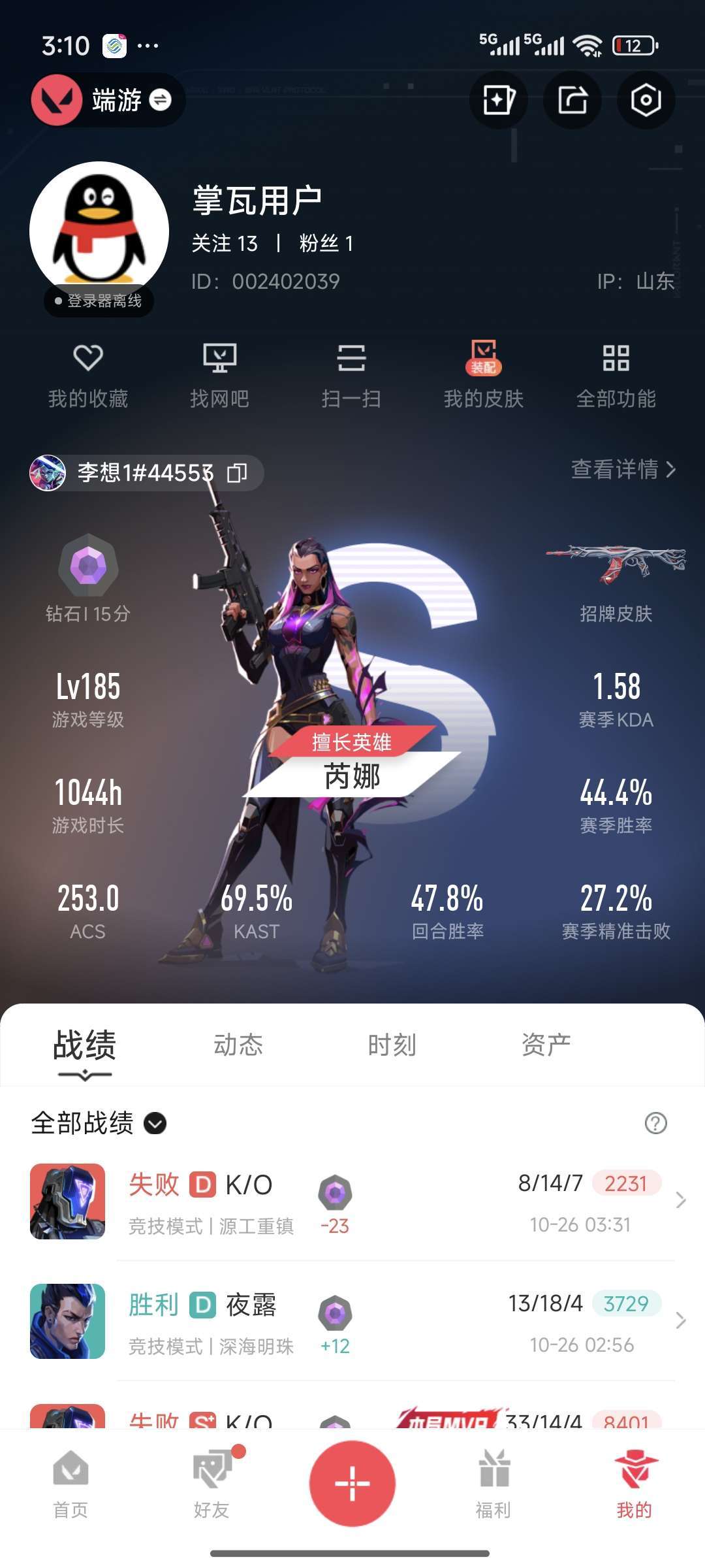 端游无畏契约账号 AK盖亚皮肤 英雄有20多个玩 kd高不容易封
