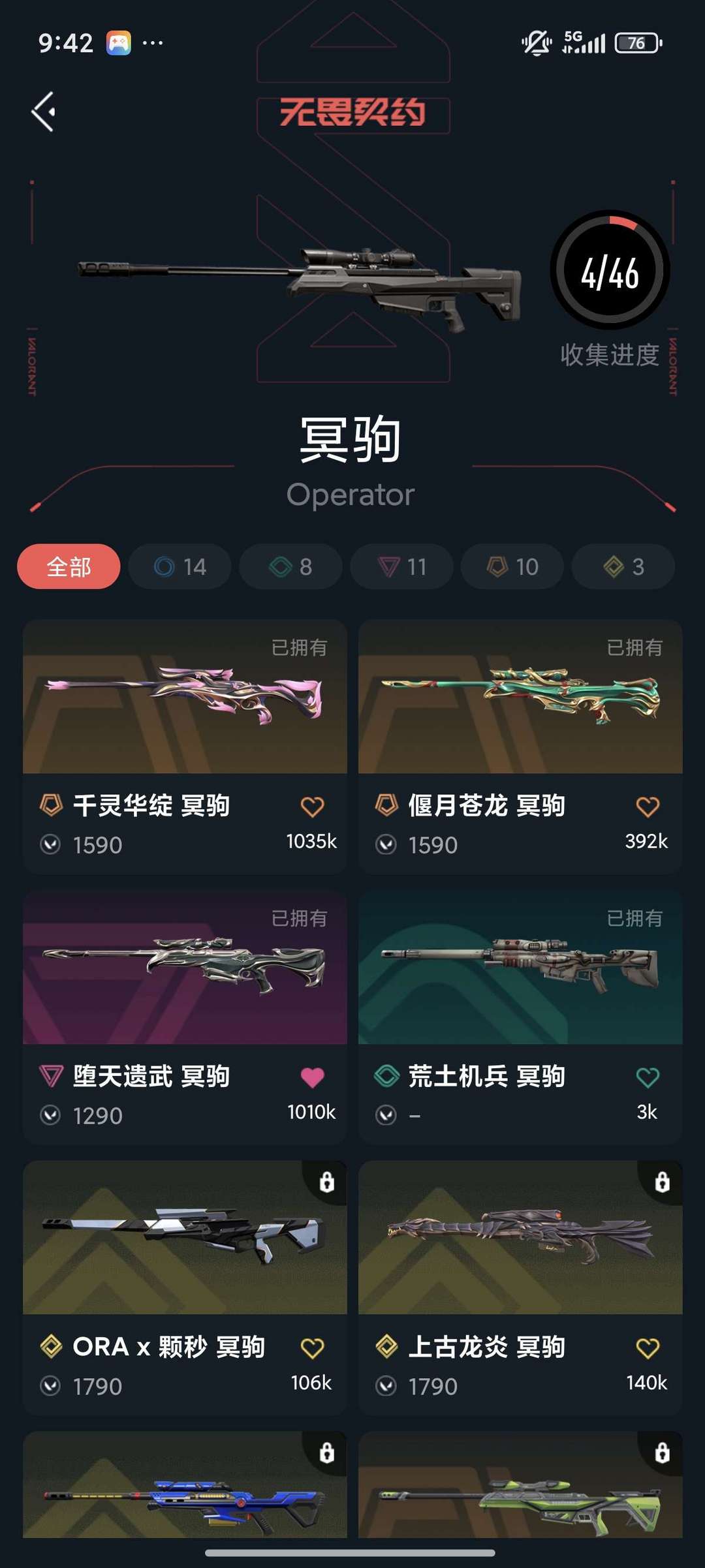 主战基本都有三四个皮肤 盖亚 紫金 猫猫 侦查等 弃王大狙ak 2425冠军套