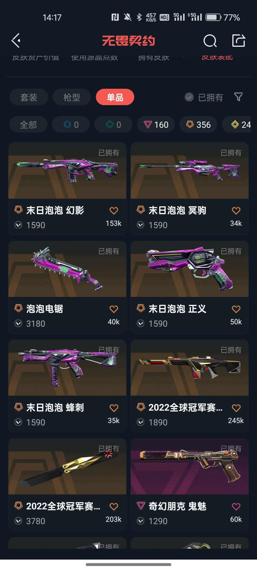 22 冠军套,末日泡泡套装,蝴蝶刀爪子刀都有皮肤