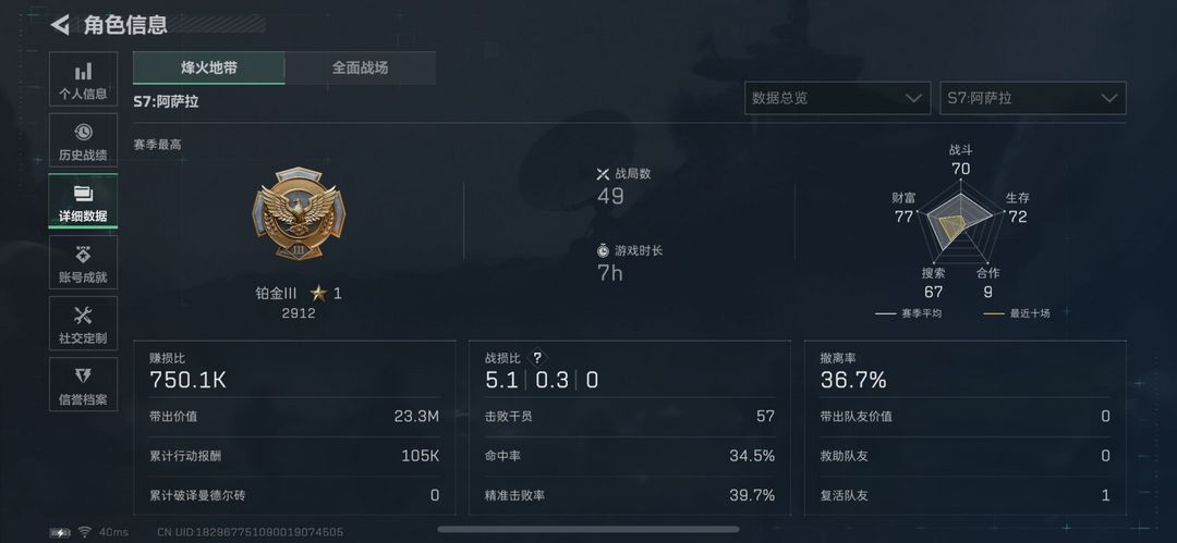 千万哈夫币 低Kd 可排位 机密 绝密 监狱60级 (6体6负)