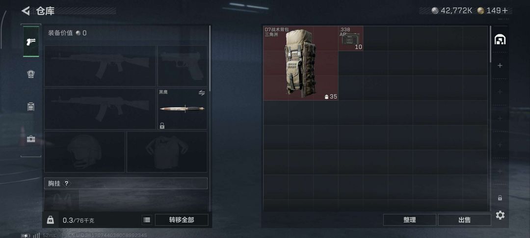 千万哈夫币 低kd护航专用唐人号,有红狼红皮,一些枪皮,纯币号可以用来护航仓库有10发aw和一个大红包