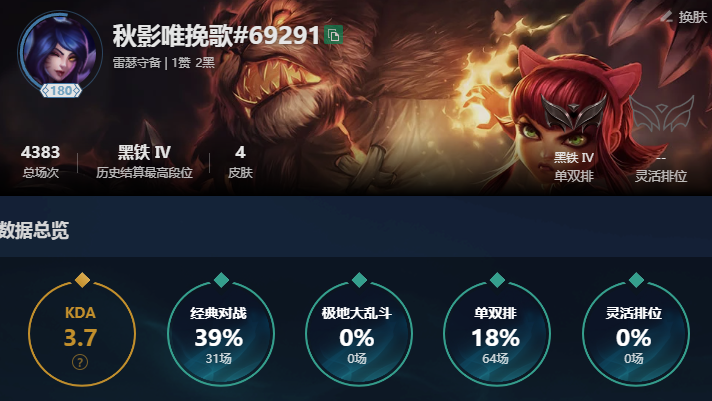 段位:180级 坚韧黑铁IV级 坚韧黑铁IV
