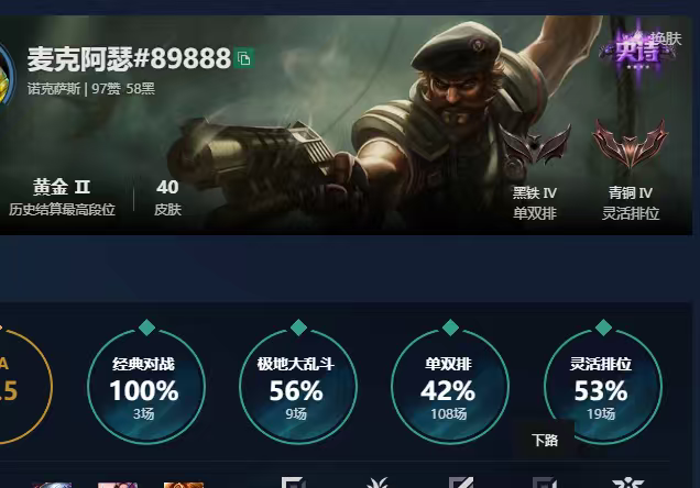 游戏区服:英雄联盟-联盟二区-诺克萨斯