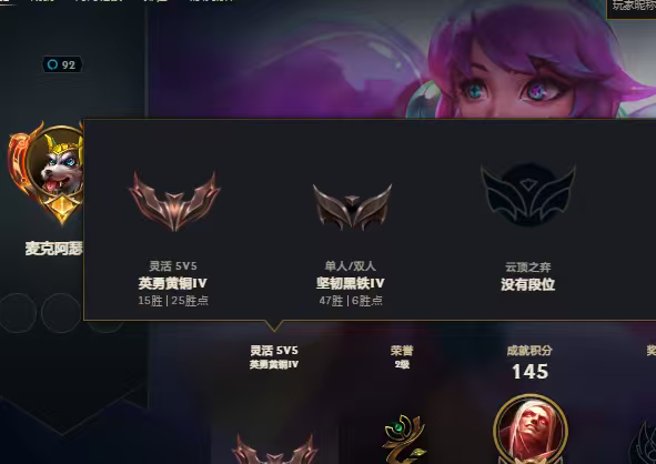 段位:92级 坚韧黑铁IV级 坚韧黑铁IV