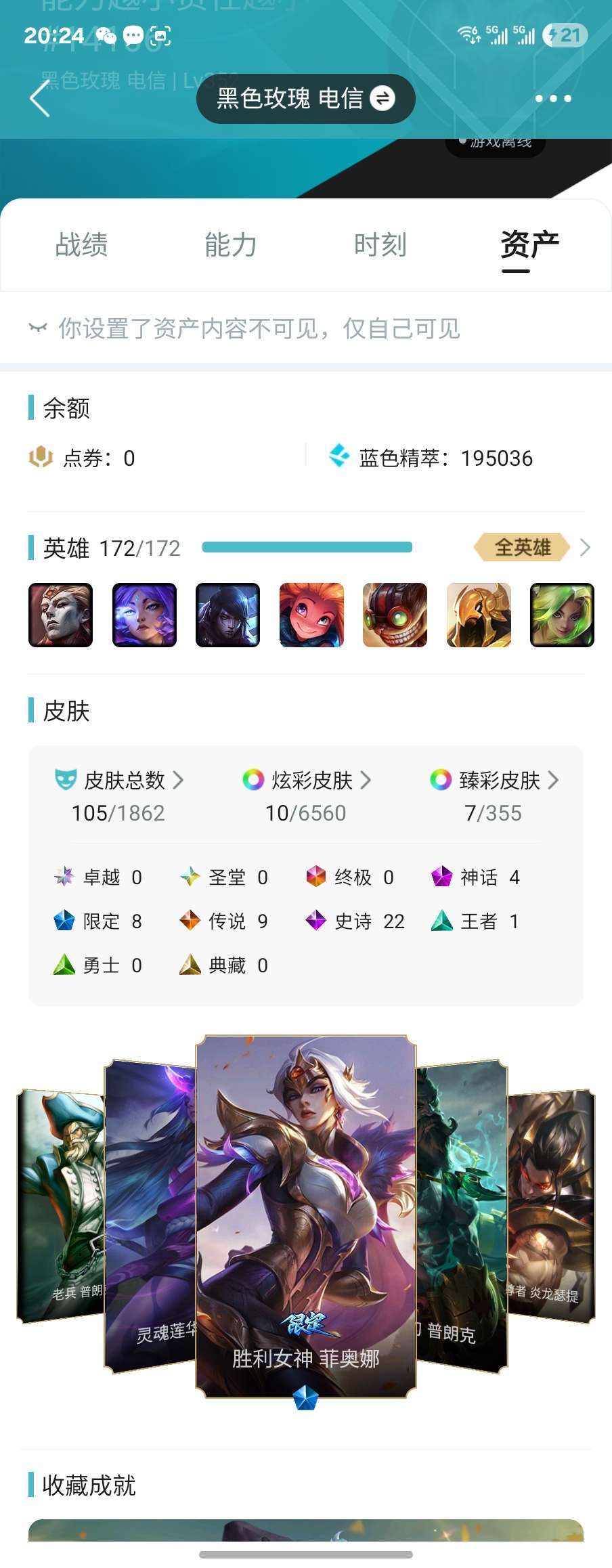 英雄联盟黑色玫瑰,常年青铜黑铁,炸鱼。反正是全英雄,没多少皮肤,便宜